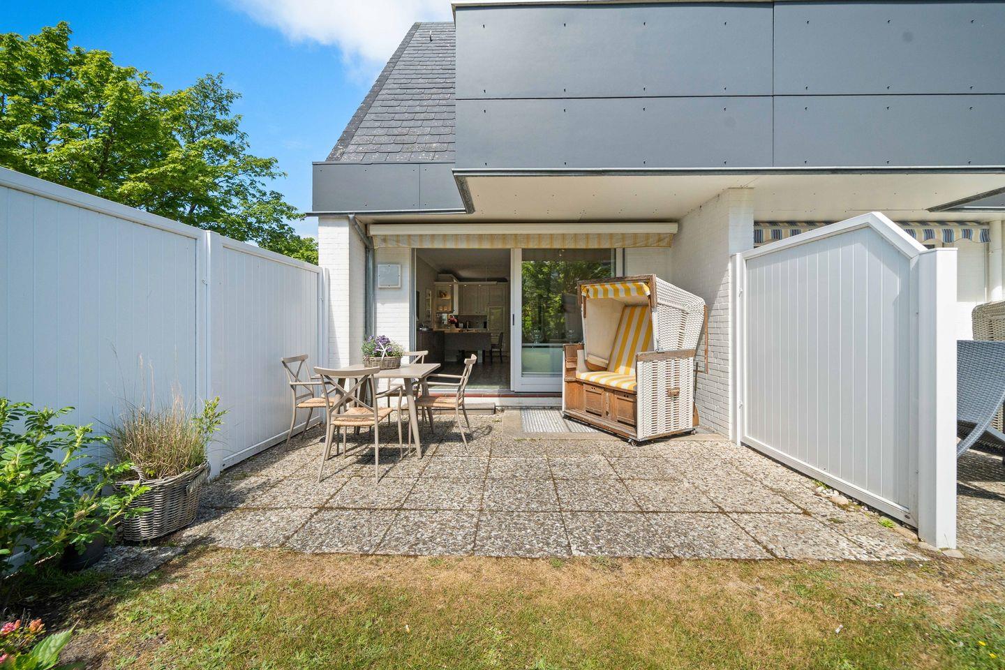 Ein echtes Highlight der Wohnung ist die Südterrasse mit Gartenanteil, die direkt an den Wohnbereich angrenzt. Hier können Sie sonnige Stunden im Freien genießen, den Tag mit einem Frühstück beginnen oder den Abend bei frischer Nordseeluft und einem Glas Wein ausklingen lassen. Die Terrasse ist ein wunderbarer Ort für gemeinsame Stunden mit Familie und Freunden.