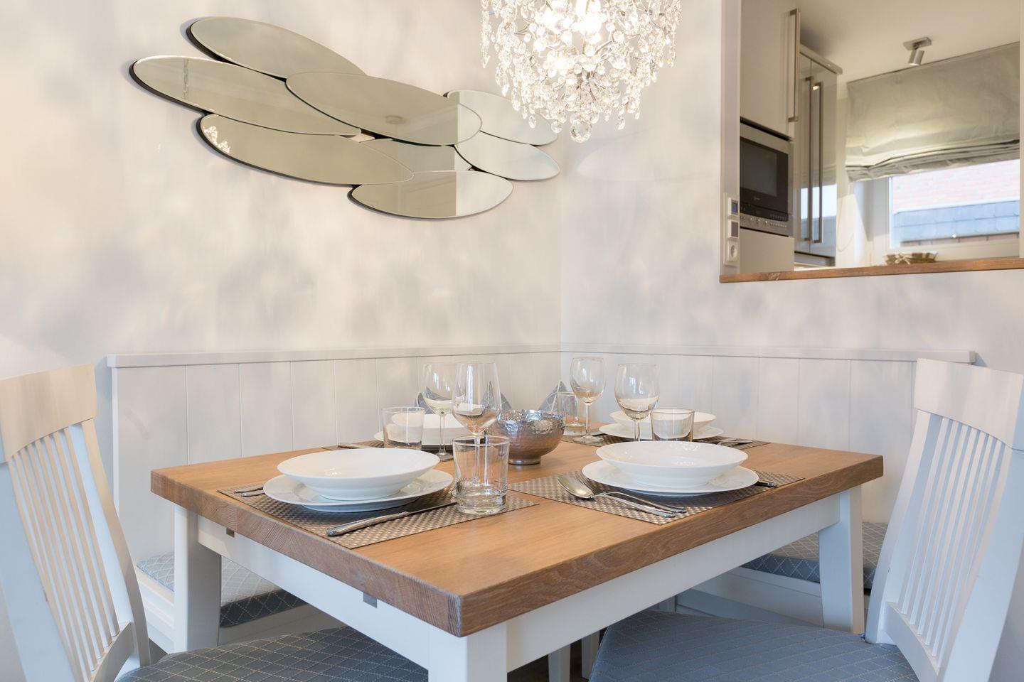 In einer ruhigen Straße unweit vom Strandübergang Gosch in Wenningstedt liegt diese gemütliche, grundrenovierte 2-Zimmer-Wohnung mit ca 58 m². Die modern-elegant eingerichtete Wohnung bietet Ihnen den Komfort für 2-4 Personen. Sie hat im Erdgeschoss einen Wohnraum mit Essecke sowie offene Einbauküche mit Geschirrspüler und Mikrowelle. Das bequeme Sofa dient dabei als einladende Schlafcouch. Hochwertiges Flat-TV, Stereo-Anlage und W-Lan sind selbstverständlich. Der geschmackvolle Doppelschlafraum mit Flat-TV und Dusch/Bad WC mit Fön befinden sich im Untergeschoss. Waschmaschine + Trockner rundet die Wohnung ab. Die Nichtraucherwohnung bietet eine Westterrasse mit Strandkorb und Gartenmöbeln. Allergiker geeignet. PKW-Stellplatz direkt vorm Haus. Bei zusätzlicher Anmietung der darüberliegenden Wohnung 6 (OG/DG) kann die Essecke auf 6 Plätze erweitert werden. Die Wohnung 3 und 6 können damit eine eigene Hauseinheit bilden. WLAN vorhanden (Ohne Gewähr)