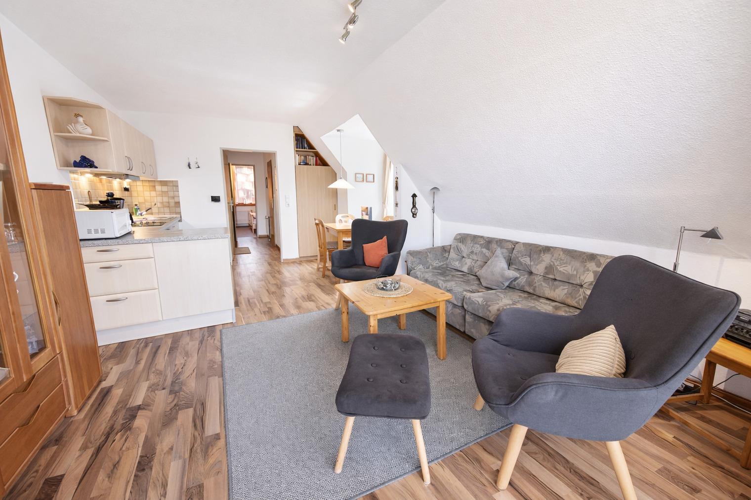 Entspannen Sie in unserer 45 m² großen, gemütlich eingerichteten Ferienwohnung mit einer voll ausgestatteten Küche – hier finden Sie alles, was sie für ihren erholsamen Urlaub brauchen. Das ruhige Schlafzimmer lädt zum Abschalten ein, wäh während der hell gestaltete Wohnbereich mit einer bequemen Schlafcouch Platz für zwei weitere Gäste bietet. Ob zum Lesen, Entspannen oder einfach nur zum Chillen – hier fühlt man sich sofort wohl.