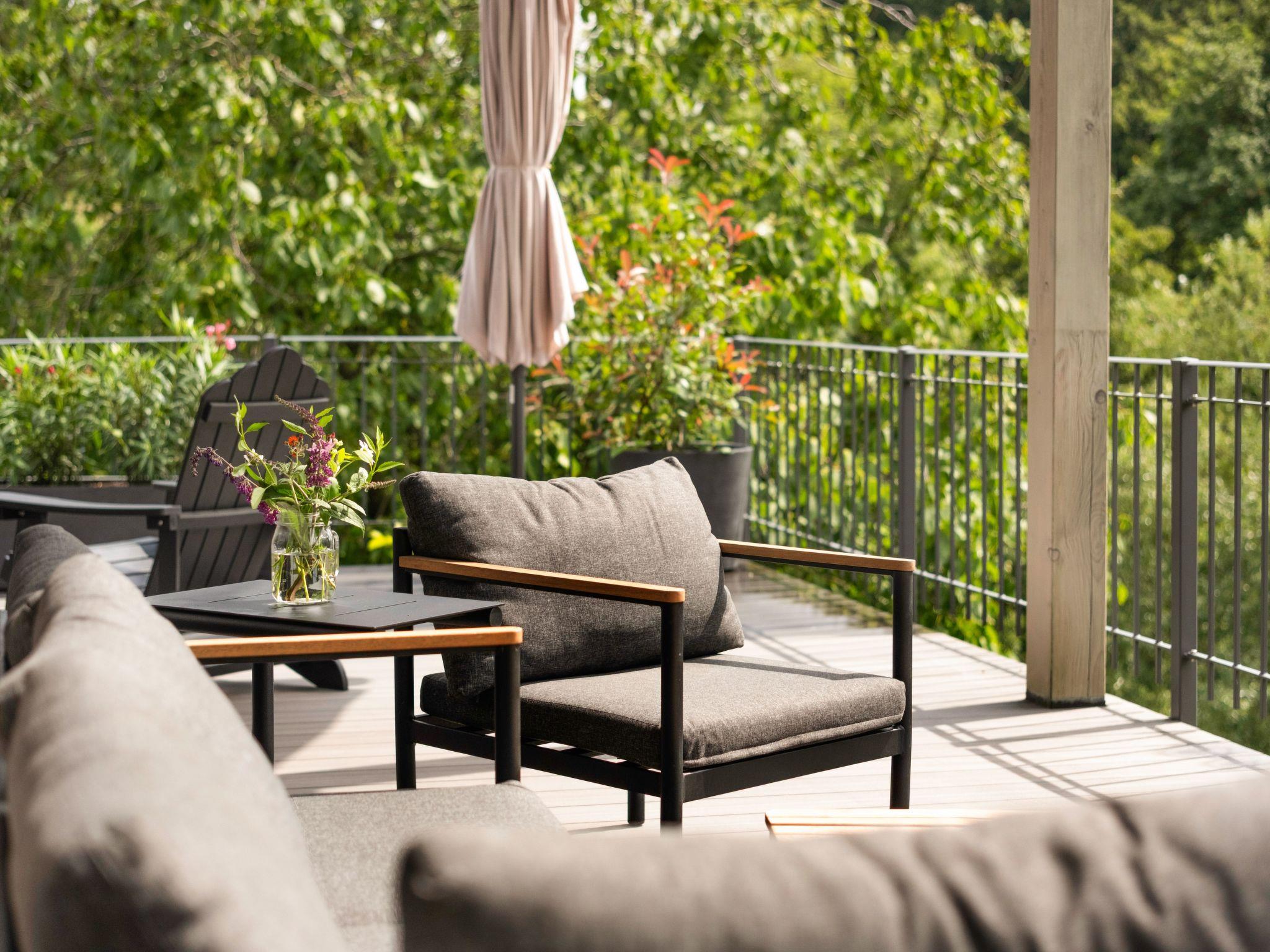 Outside, a private garden awaits you, framed by the natural beauty of the surrounding forest. Start the day with breakfast on the balcony or recharge your batteries in this peaceful oasis. The garden is the perfect place to enjoy the peace and fresh air and experience a sense of relaxation and being.