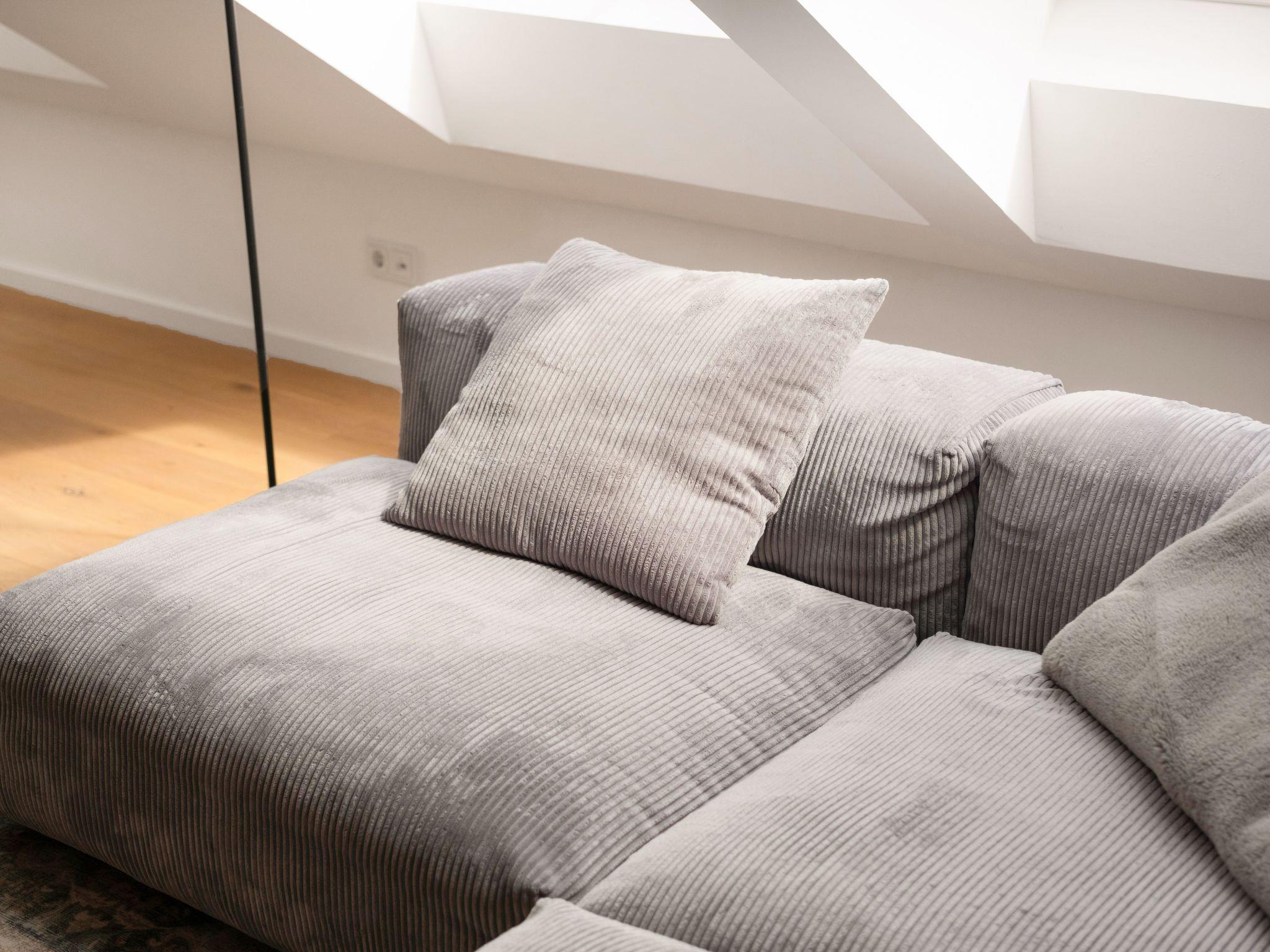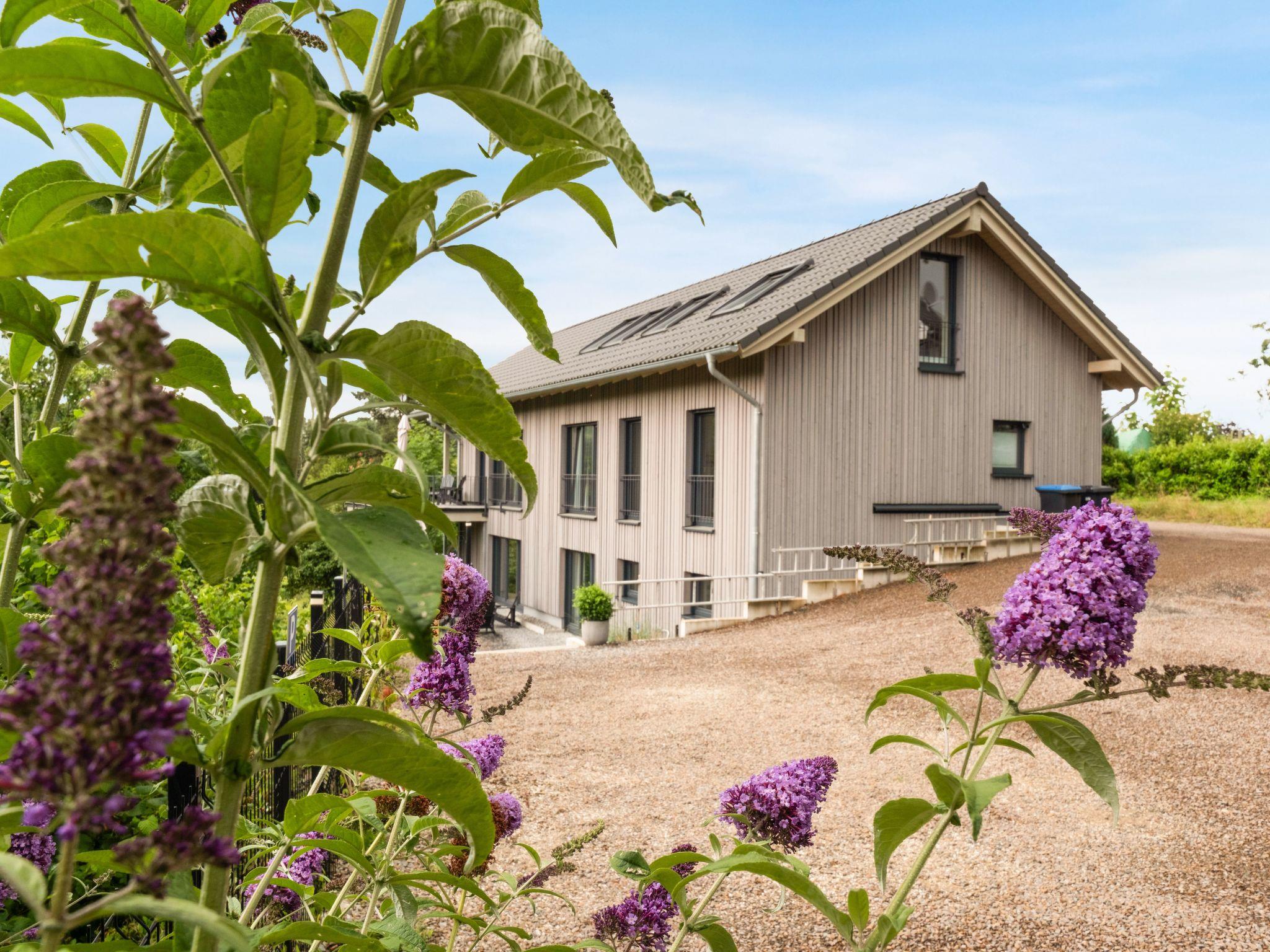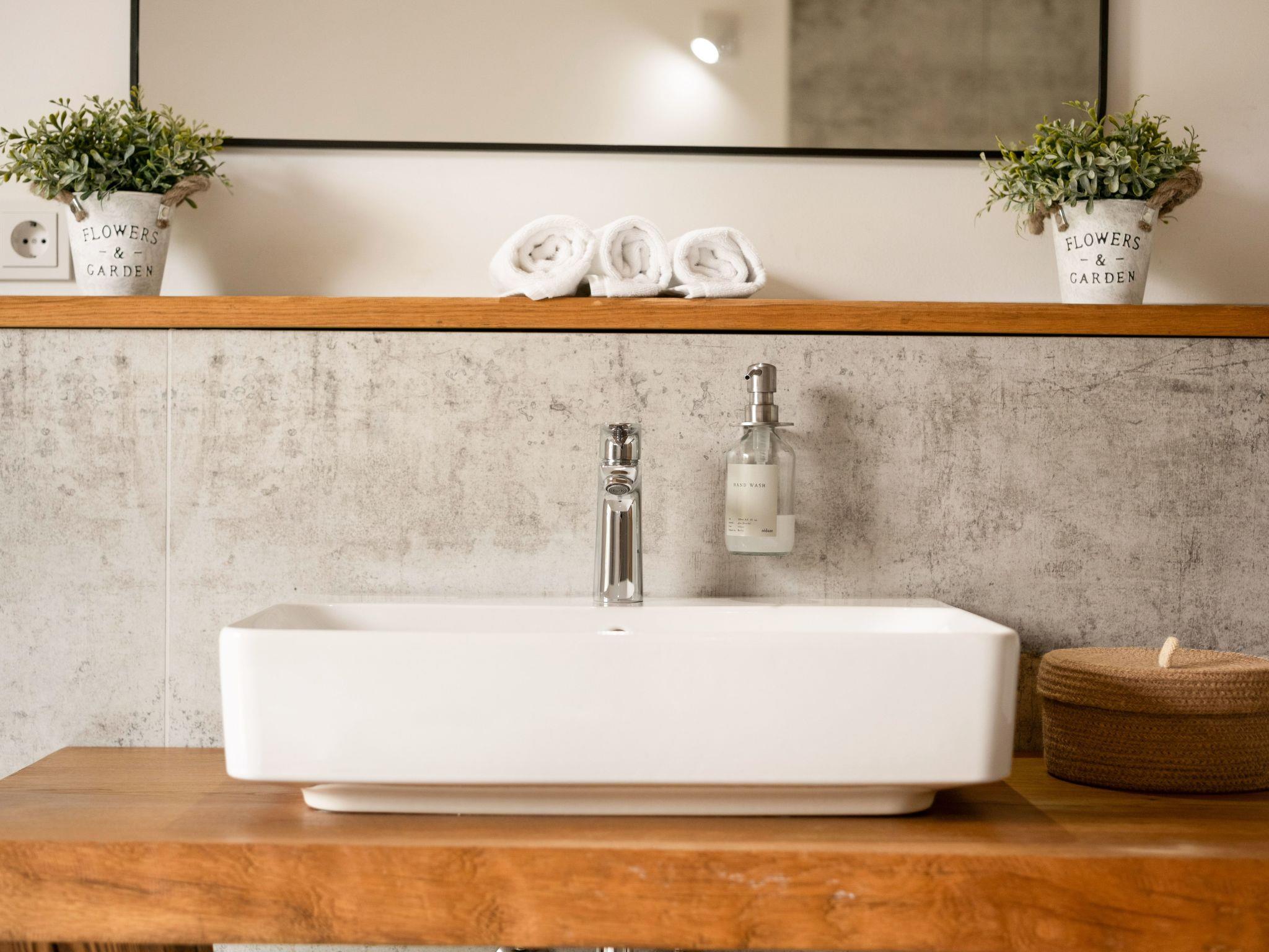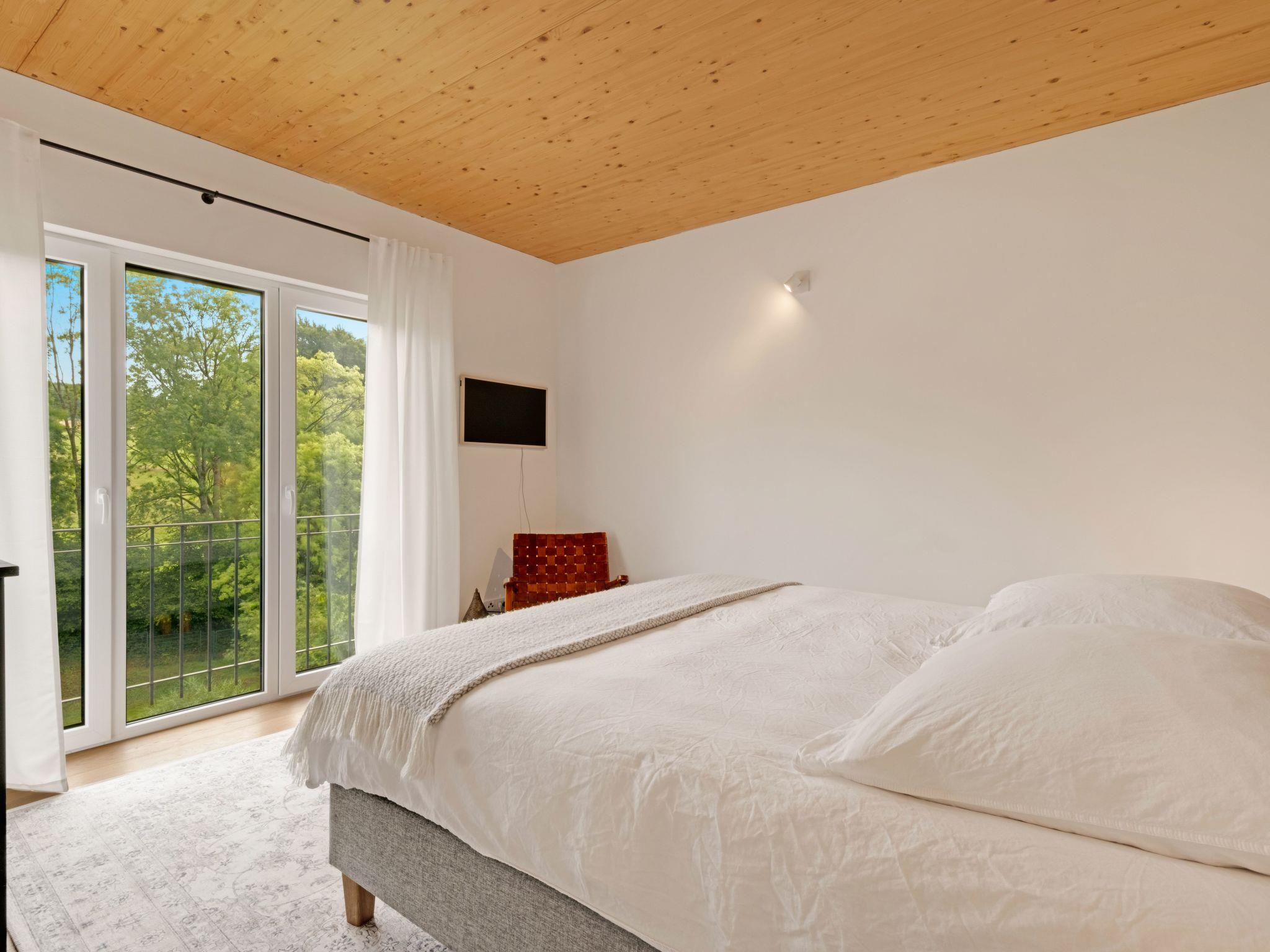 The interior of our holiday flat welcomes you with a spacious living and kitchen area that invites you to linger together. A 50-inch smart TV provides entertainment, while the fully equipped kitchen has an induction hob, filter and capsule coffee machine, kettle and dishwasher to fulfil every wish. The modern underfloor heating and the natural construction of the wooden house ensure a pleasant indoor climate all year round.