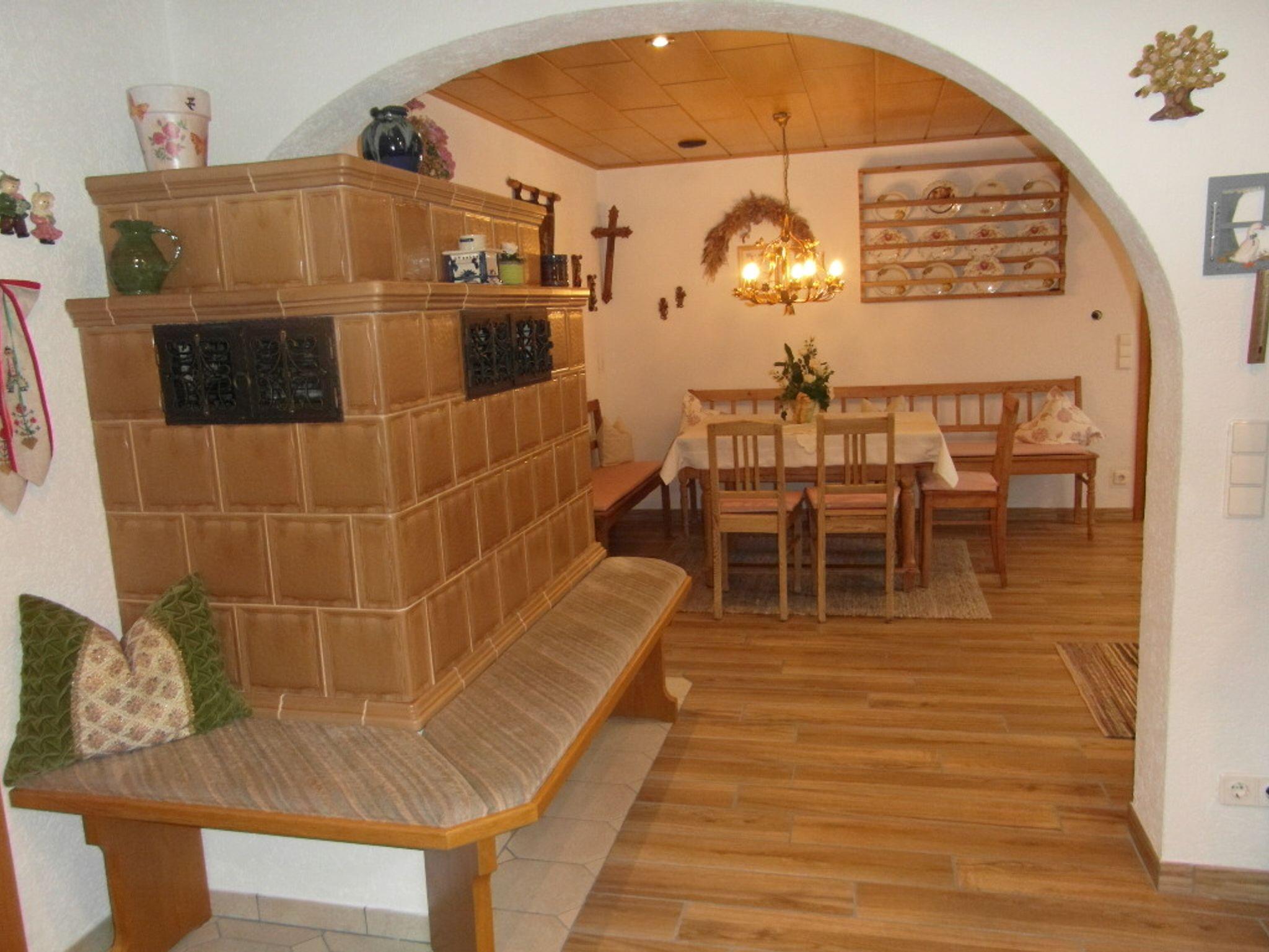 SAT-TV und Kachelofen, Fußbodenheizung, Balkon sowiekomplett ausgestatteter Küche mit Essgruppe,