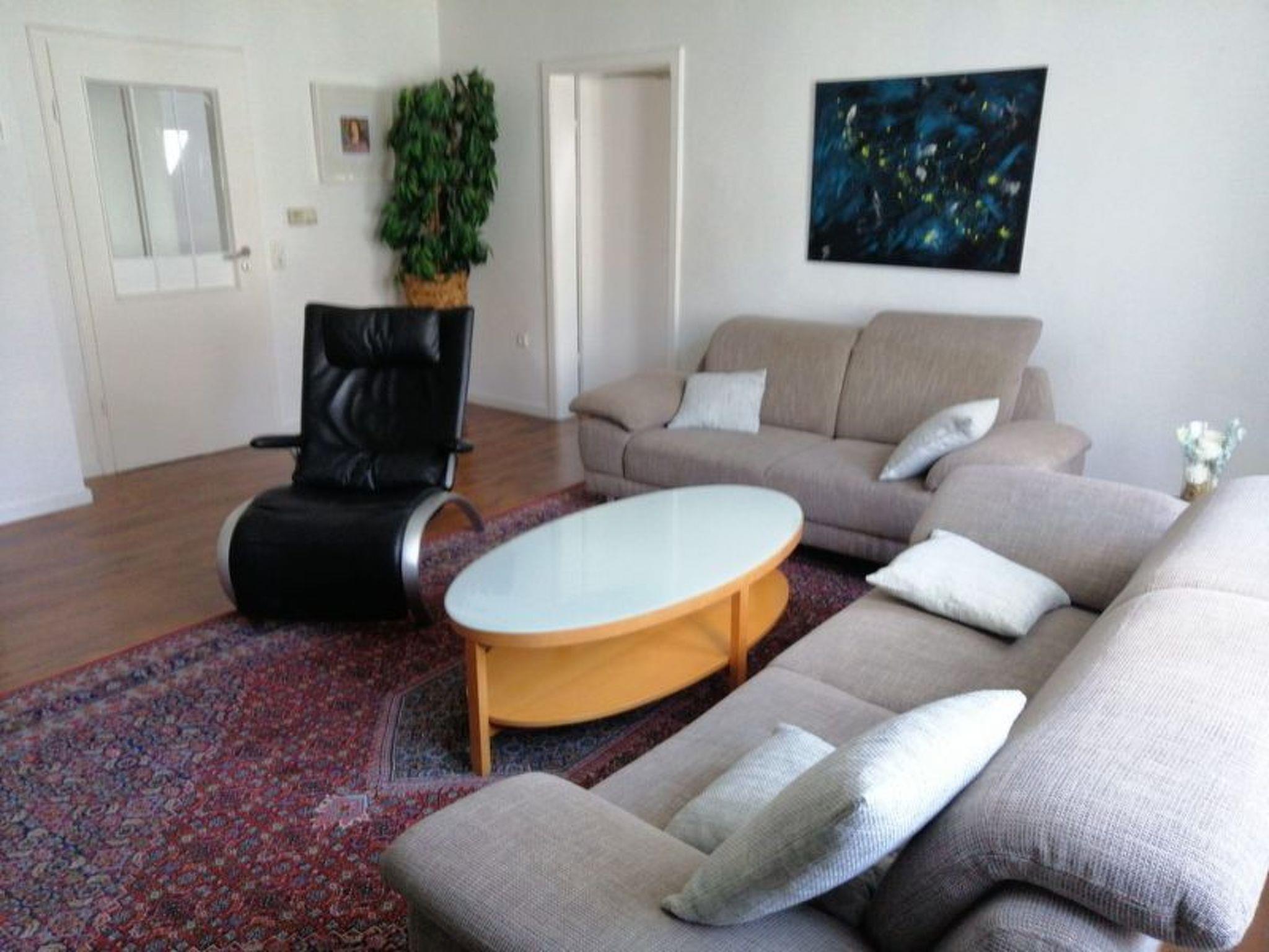 The flat (2 bedrooms, 1 attic) is on the 2nd floor and has a living room with a cosy sitting area which can also be used as a bed, satellite TV, DVD and video. One bedroom with double bed, another bedroom with double bed and sofa bed for 1 person, 1 attic with a single bed and DVBT TV, furthermore a kitchen with microwave, an electric cooker, ceramic hobs with oven, a fridge-freezer, toaster, coffee maker, kettle and a bathroom with bathtub. Bicycles from small to large are available free of charge for our guests to explore the numerous surrounding sights. Each flat has a free parking space in the multi-storey car park and bicycles can be rented free of charge.