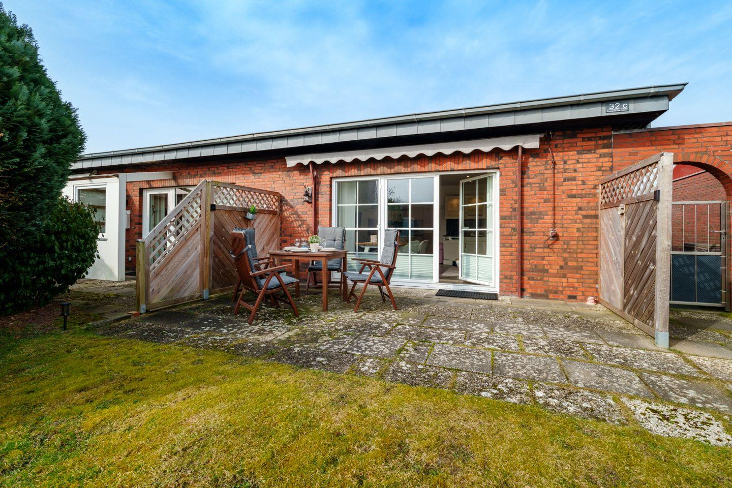 Ein besonderes Highlight ist die Terrasse mit Gartenmöbeln, Sonnenliegen und Markise – perfekt zum Entspannen und Sonnenbaden.