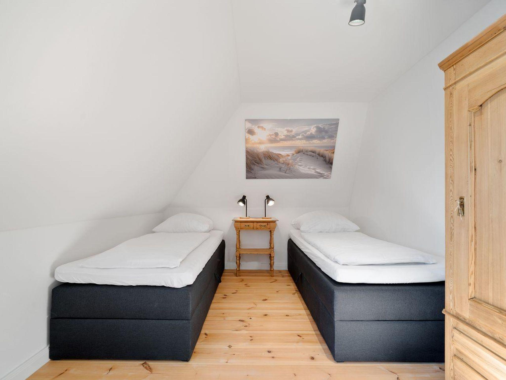 Die Ferienwohnung verfügt über ca. 60 m² Wohnfläche und ist wie folgt aufgeteilt: Ein geräumiger Wohnraum mit TV und Zugang zur großzügigen Dachterrasse. Die Küche ist voll ausgestattet und grenzend an den offenen Wohn- und Essenbereich. Ein separates Duschbad bietet allen Komfort. Vom Flur aus gelangen Sie in die Schlafzimmer mit einem Boxspringbett (1,8 x 2,0 m) und einem weiteren Schlafzimmer mit zwei Einzelbetten (0,9 x 2,0 m).