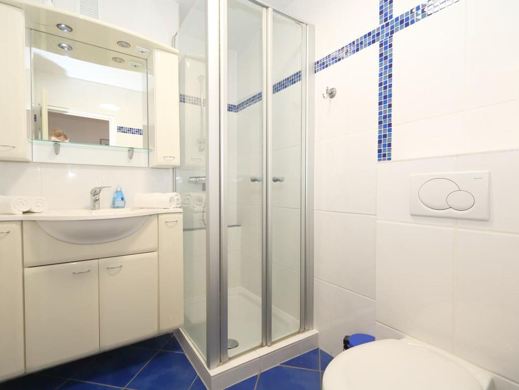 Duschbad und WC, Fön und Handtuch-Trockner. Ausreichend Handtücher und Vorleger.