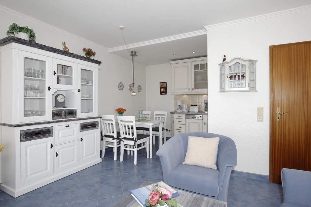 Erleben Sie entspannte Urlaubstage in dieser gemütlichen 2-Zimmer-Nichtraucher-Ferienwohnung mit ca. 48 m² Wohnfläche, ideal für maximal 4 Personen. Die Wohnung befindet sich in der 1. Etage zur Südseite und bietet einen großzügigen Südbalkon, der mit Balkonmöbeln und Auflagen ausgestattet ist und zum Verweilen in der Nachmittagssonne einlädt.