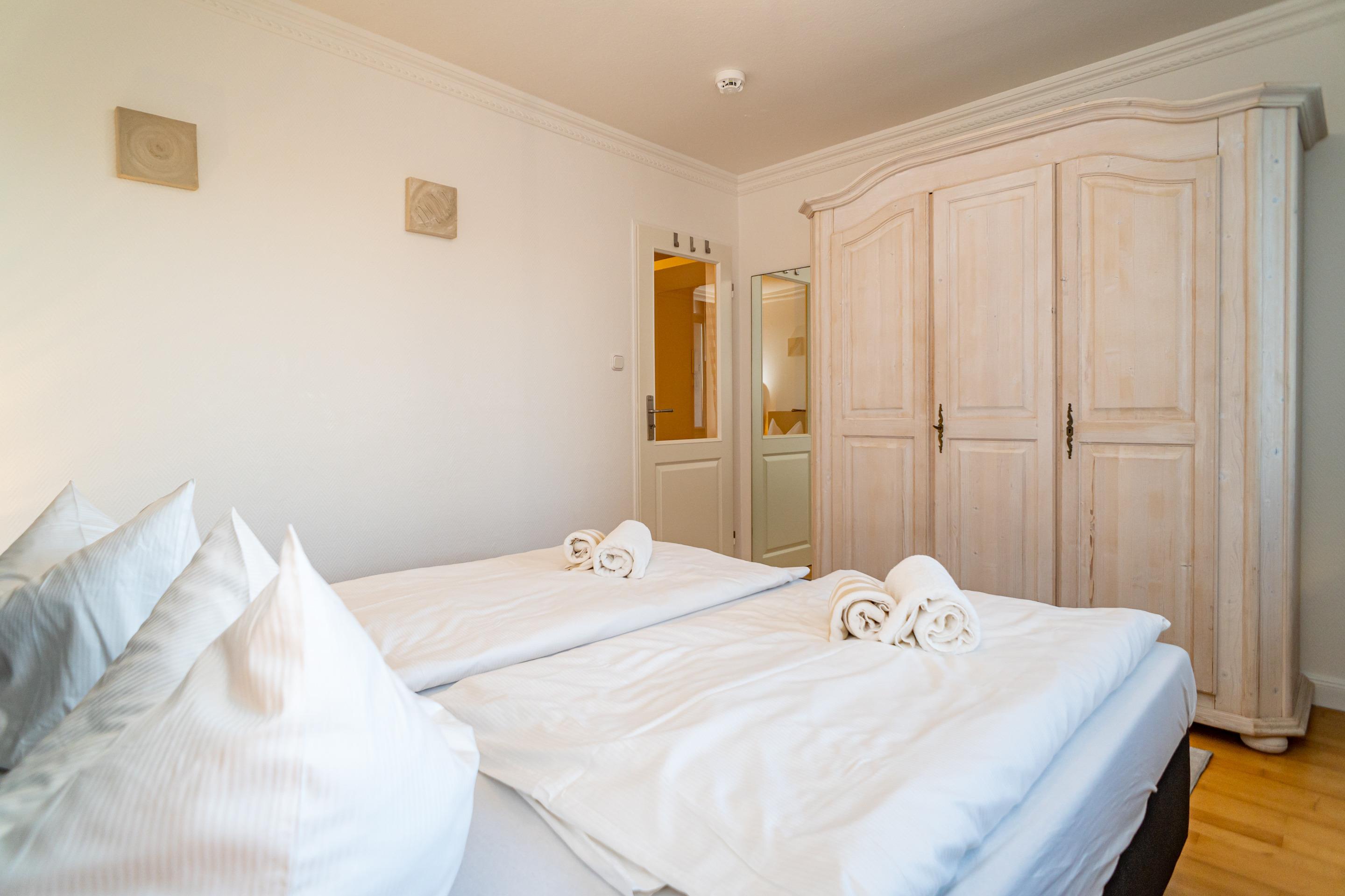 Das Schlafzimmer bietet ein neues Boxspringbett (1,60 x 2,00 m) mit einem großzügigem Kleiderschrank sowie Zugang zu dem Ostbalkon (Morgensonne, Balkonmöbel inkl. Auflagen).
