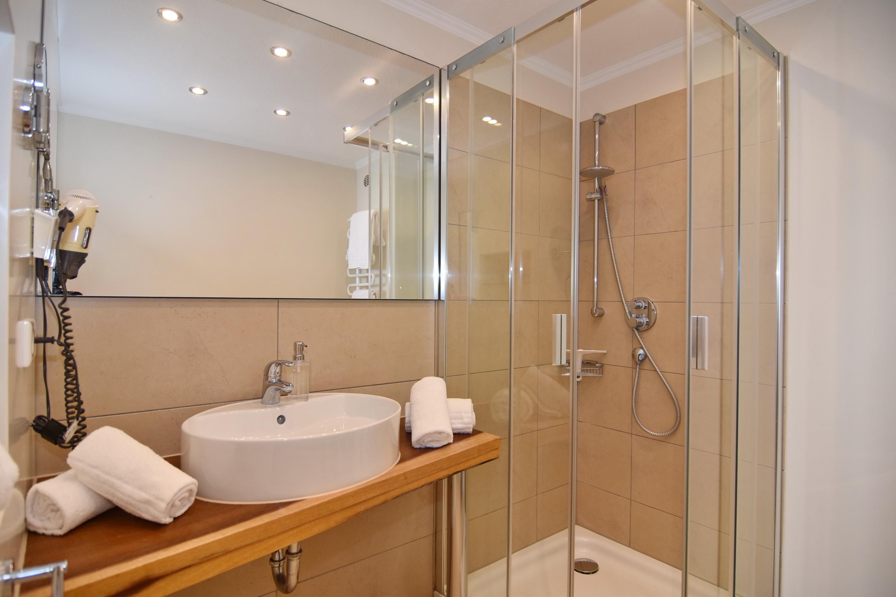 Badeværelse med bruser og badekar