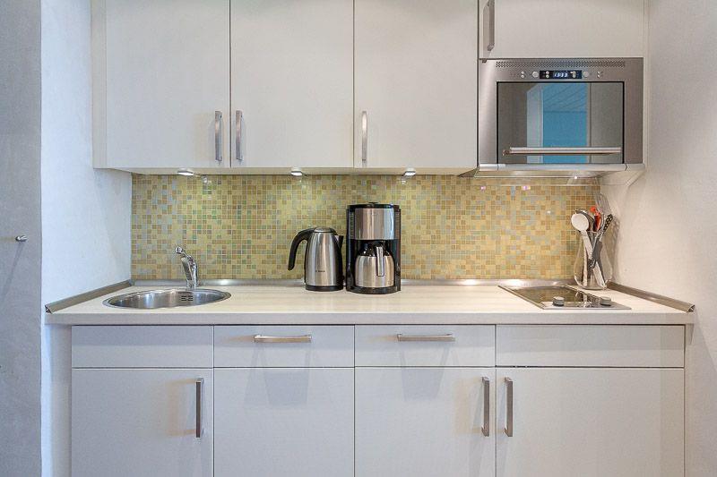 Mit einer großzügigen Wohnfläche von 34 m² bietet die Ferienwohnung Platz für zwei Personen und ist ideal für Paare oder alleinreisende Gäste. Sie können in einem gemütlichen Schlafzimmer zur Ruhe kommen, das eine einladende Atmosphäre zum Entspannen und Regenerieren schafft. Der offene Küchenbereich ist modern eingerichtet und verfügt über alle notwendigen Geräte, darunter einen Herd, eine Spülmaschine, eine Mikrowelle und eine Kaffeemaschine. So können Sie nicht nur köstliche Mahlzeiten zubereiten, sondern auch den Blick auf das Meer beim Kochen genießen.