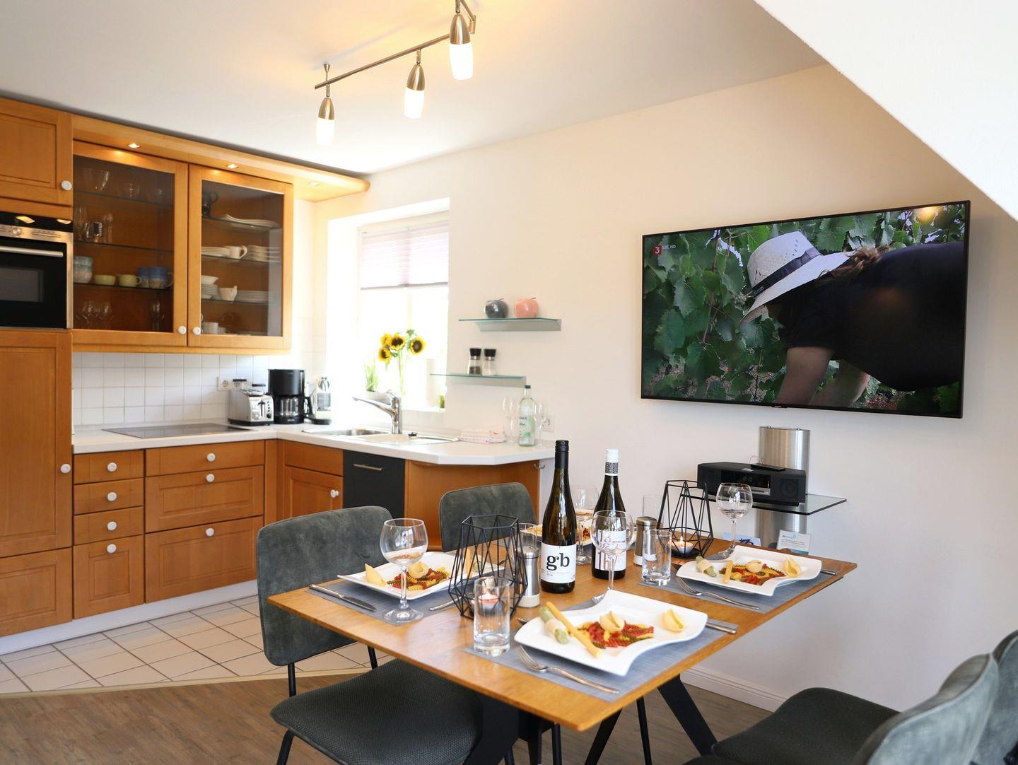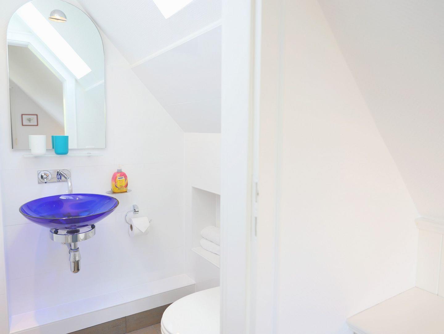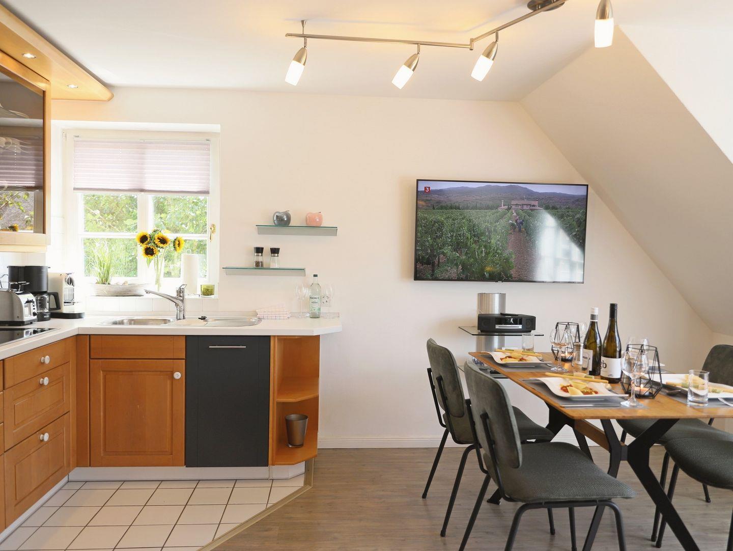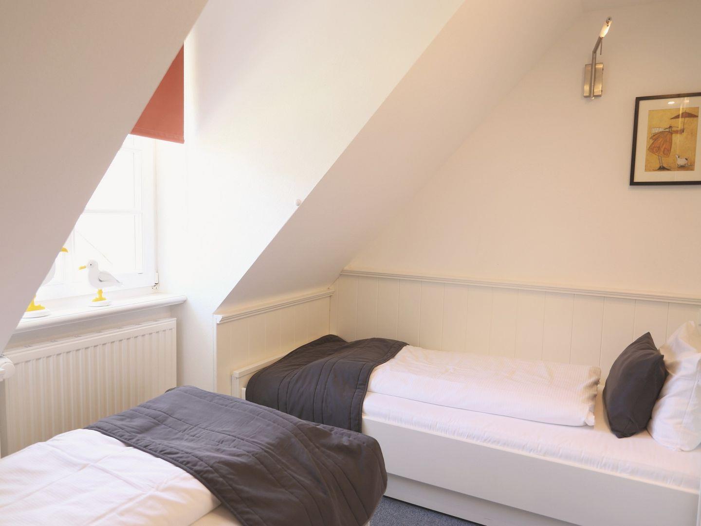 Genießen Sie Ihren Aufenthalt in dieser exklusiven 58 m² großen 3-Zimmer-Ferienwohnung direkt hinter den Dünen von Westerland. Die Wohnung bietet ein hochwertiges Ambiente mit einem Wohnraum inklusive Küchenzeile und Zugang zum Südbalkon, ausgestattet mit Gartentisch und Stühlen. Es gibt zwei Schlafzimmer: ein Doppelbettzimmer (180 x 200 cm) im Obergeschoss mit eigenem WC und Kabel-TV sowie ein Zweibettzimmer (2 Einzelbetten, je 90 x 200 cm). Das moderne Badezimmer verfügt über Dusche und WC. Von April bis Oktober steht Ihnen am Strand ein kostenloser Strandkorb zur Verfügung. Ein kostenfreier Stellplatz ist vorhanden. Im Keller finden Sie eine Waschmaschine und einen Trockner. Keine Haustiere erlaubt. Die Unterkunft ist mit 4 Sternen (DTV) klassifiziert und bietet eine erstklassige Ausstattung für einen entspannten Urlaub.