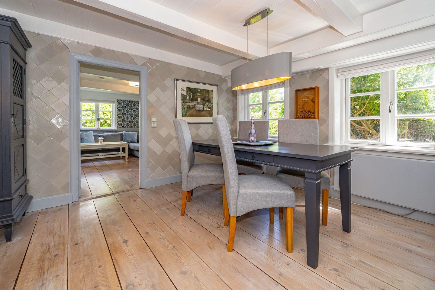 Das Kapitänshuis bietet Ihnen auf rund 90 m² Wohnfläche ein komfortables und typisch friesisches Zuhause für einen entspannten Aufenthalt auf der beliebten Nordseeinsel. Das Ferienhausteil ist für bis zu vier Personen ausgelegt. Haustiere sind ausdrücklich willkommen (nach vorheriger Anmeldung und gegen Gebühr).