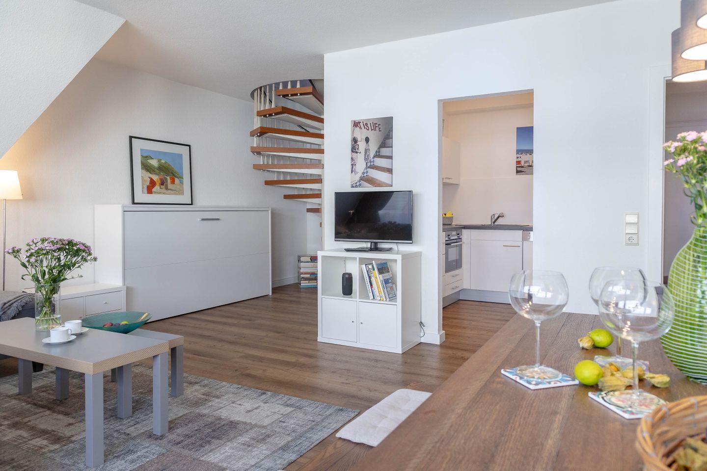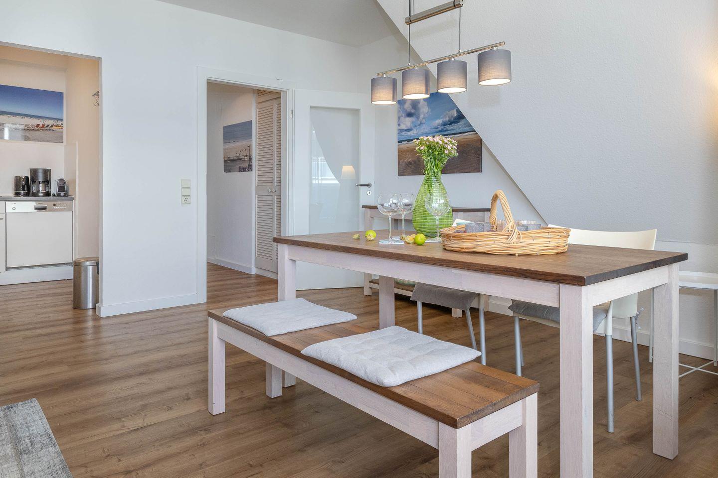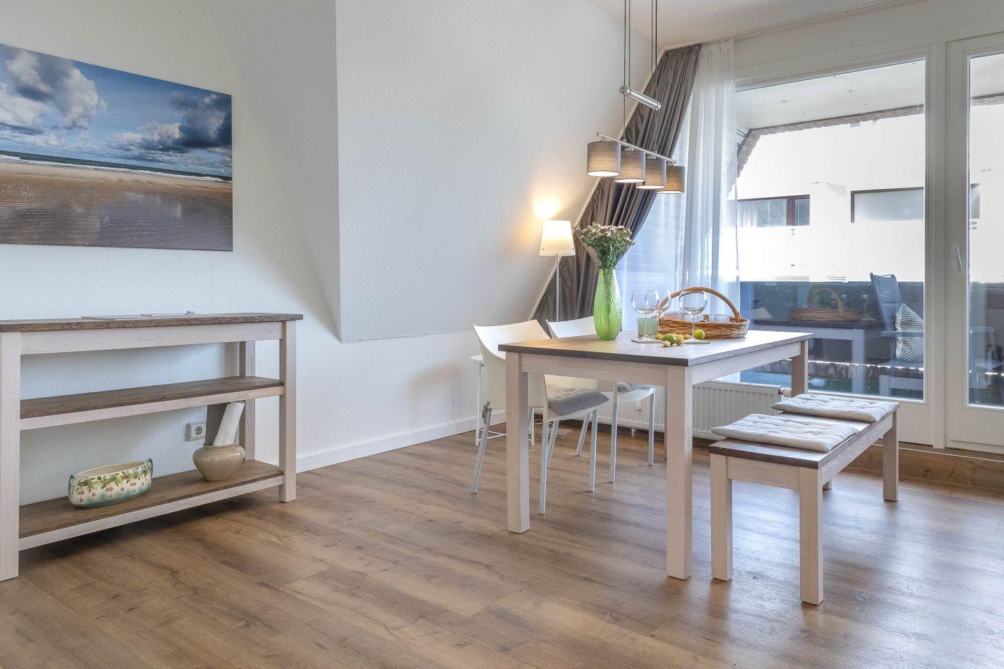 Neu ab sofort - Die Ferienwohnung SEASIDE 32 begrüßt Sie in bester Lage in Westerland, in der Friedrichstraße 35 und bietet auf 60 m² modernen Komfort für bis zu vier Personen. Die Unterkunft befindet sich im dritten Stock eines gepflegten Hauses mit Aufzug und eignet sich sowohl für Familien als auch für Paare, die Wert auf eine stilvolle und zugleich praktische Ausstattung legen. Durch die zentrale Lage an der Friedrichstraße ist die Wohnung ideal gelegen, um das Angebot von Westerland unkompliziert zu genießen.