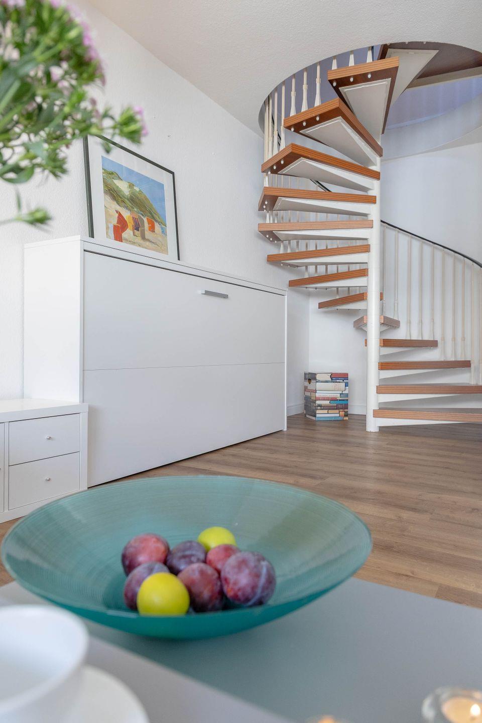 Moderne Unterhaltungselektronik ist durch einen digitalen Fernseher sowie eine HiFi-Anlage gewährleistet. Das kostenfreie WLAN ermöglicht es Ihnen, auch während des Urlaubs komfortabel online zu bleiben. Die Unterkunft verteilt sich über 2 Etagen, wobei sich die Wohnung selbst im 3. Stock befindet und bequem mit dem ebenerdig erreichbaren Aufzug.