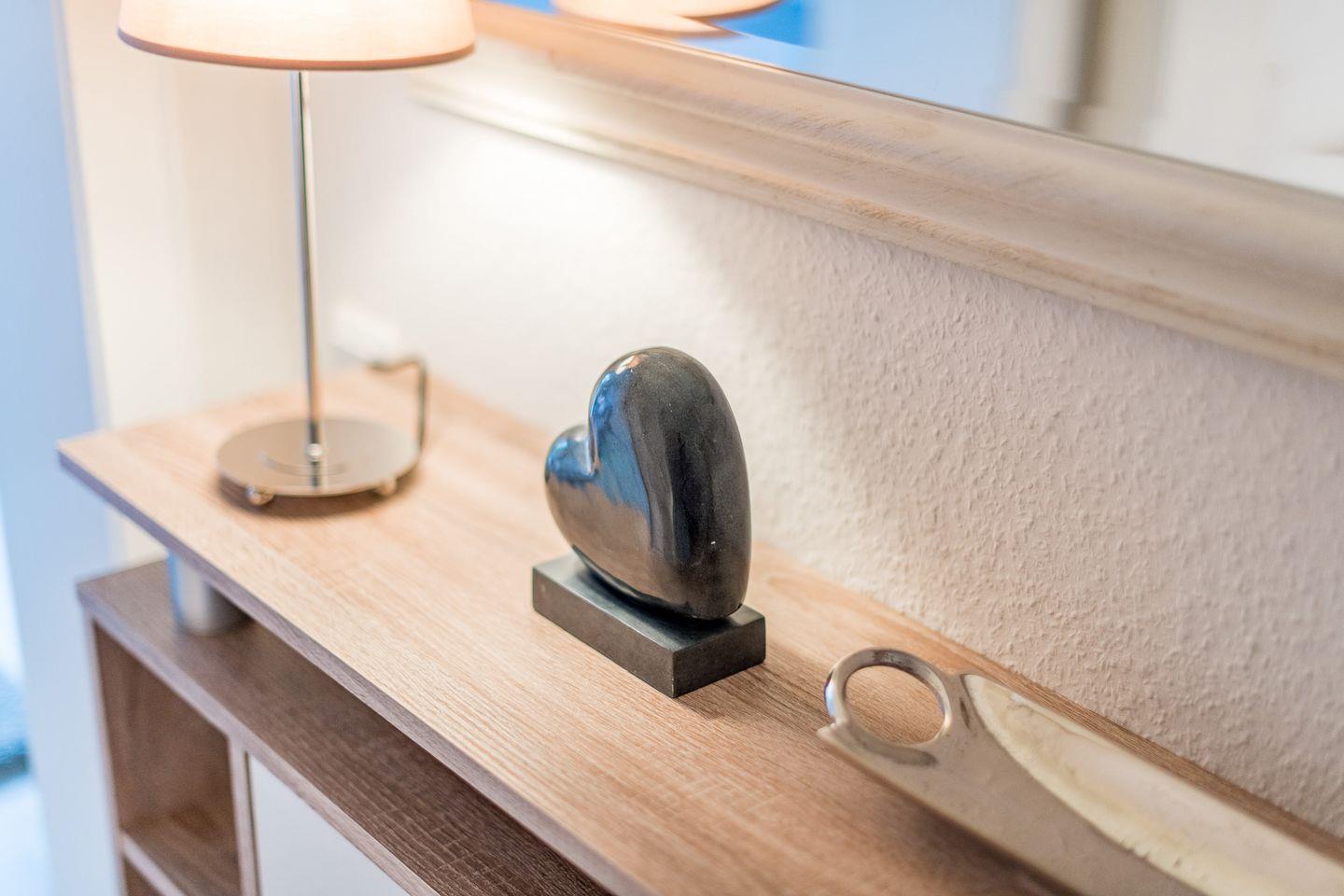 Ein Flur mit Garderobe befindet sich im Eingangsbereich. Zur kostenfreien Nutzung stehen eine Waschmaschine und ein Trockner im Haus zur Verfügung. Pkw-Stellplatz und WLAN (ohne Gewähr) sind ebenfalls vorhanden.