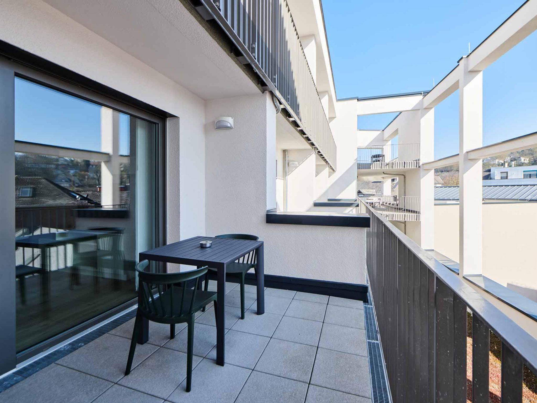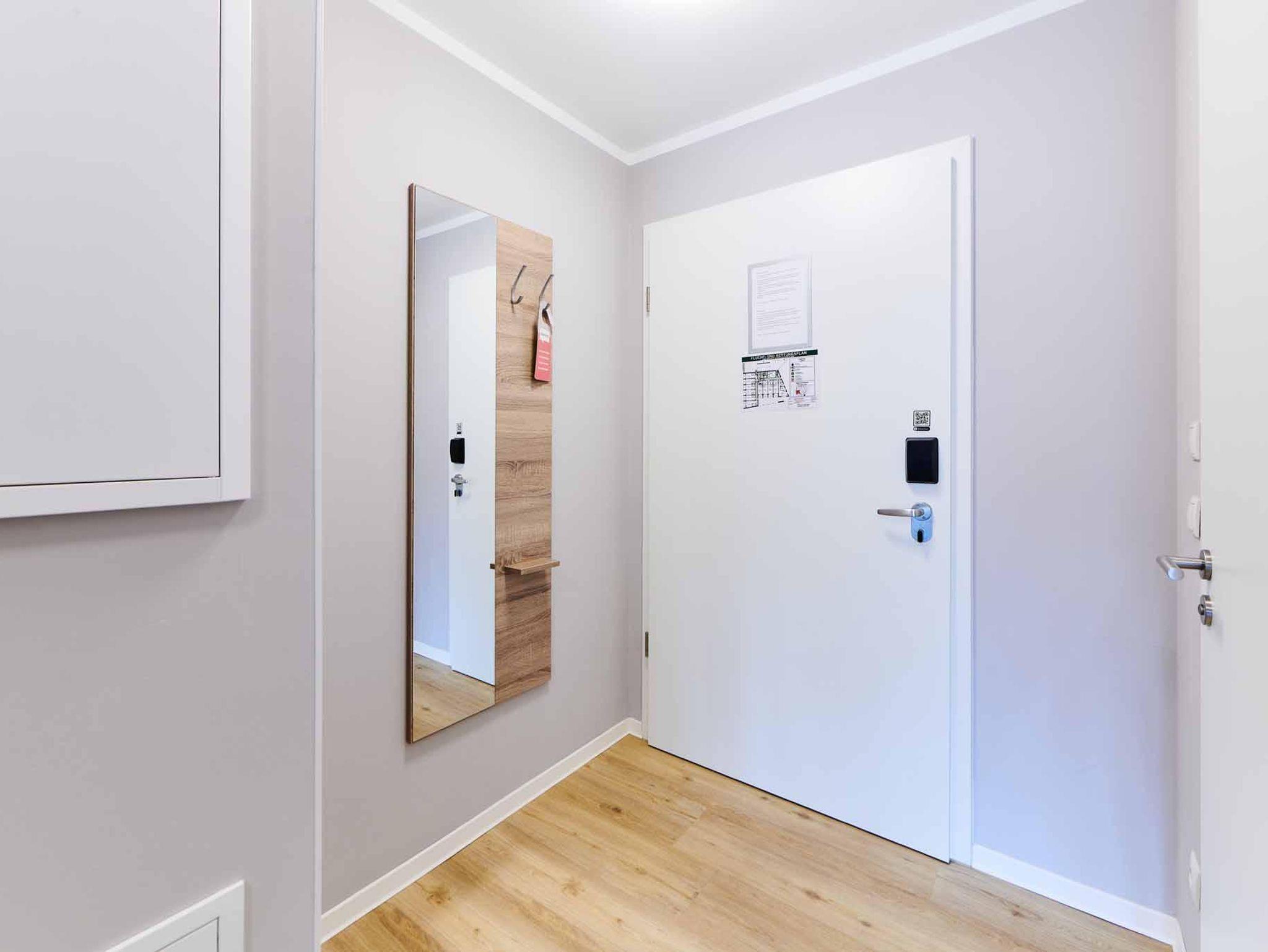 Unsere 27 stilvoll eingerichteten Einzel-Apartments mit 31 bis 39 qm Wohnfläche sind die perfekte Wahl für anspruchsvolles Wohnen auf Zeit. Große Glasfronten und eigene Terrassen lassen viel Tageslicht herein und schaffen eine helle, freundliche Atmosphäre. Jedes Apartment überzeugt mit durchdachtem Komfort: eine voll ausgestattete Küche, modernes Bad, großzügiger Stauraum und hochwertiges Interieur sorgen dafür, dass Sie sich vom ersten Moment an wohlfühlen. Im Gebäude stehen Ihnen zudem kostenfreie Waschmaschinen und Trockner, schneller WLAN-Zugang sowie gratis Kaffee zur Verfügung – für ein rundum angenehmes Wohnerlebnis.