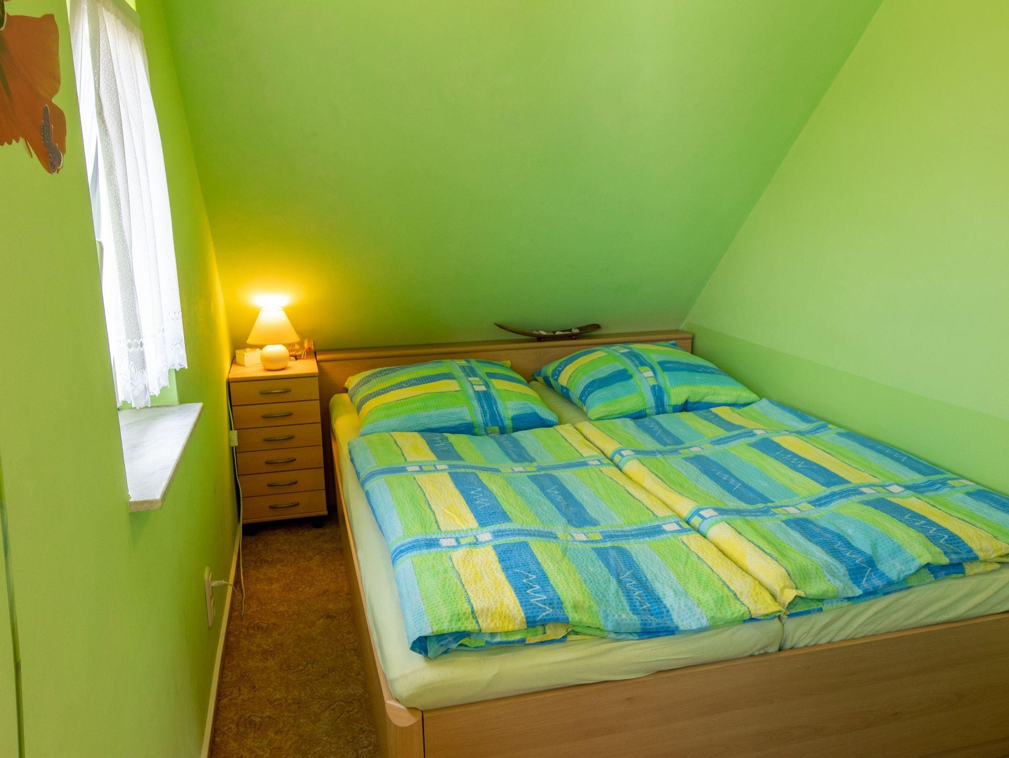 Das Appartement befindet sich im 1. OG des Hauses und besteht aus einem Wohnzimmer mit Küchenzeile, Essecke, TV und Eckcouch, einem Schlafbereich mit Doppelbett (160 x 200), der durch einen Vorhang vom Wohnzimmer abgetrennt ist, sowie Dusche und WC. Die Couch im Wohnzimmer kann als Aufbettung genutzt werden. Den Gästen steht kostenloses Internet-Wlan zur Verfügung.