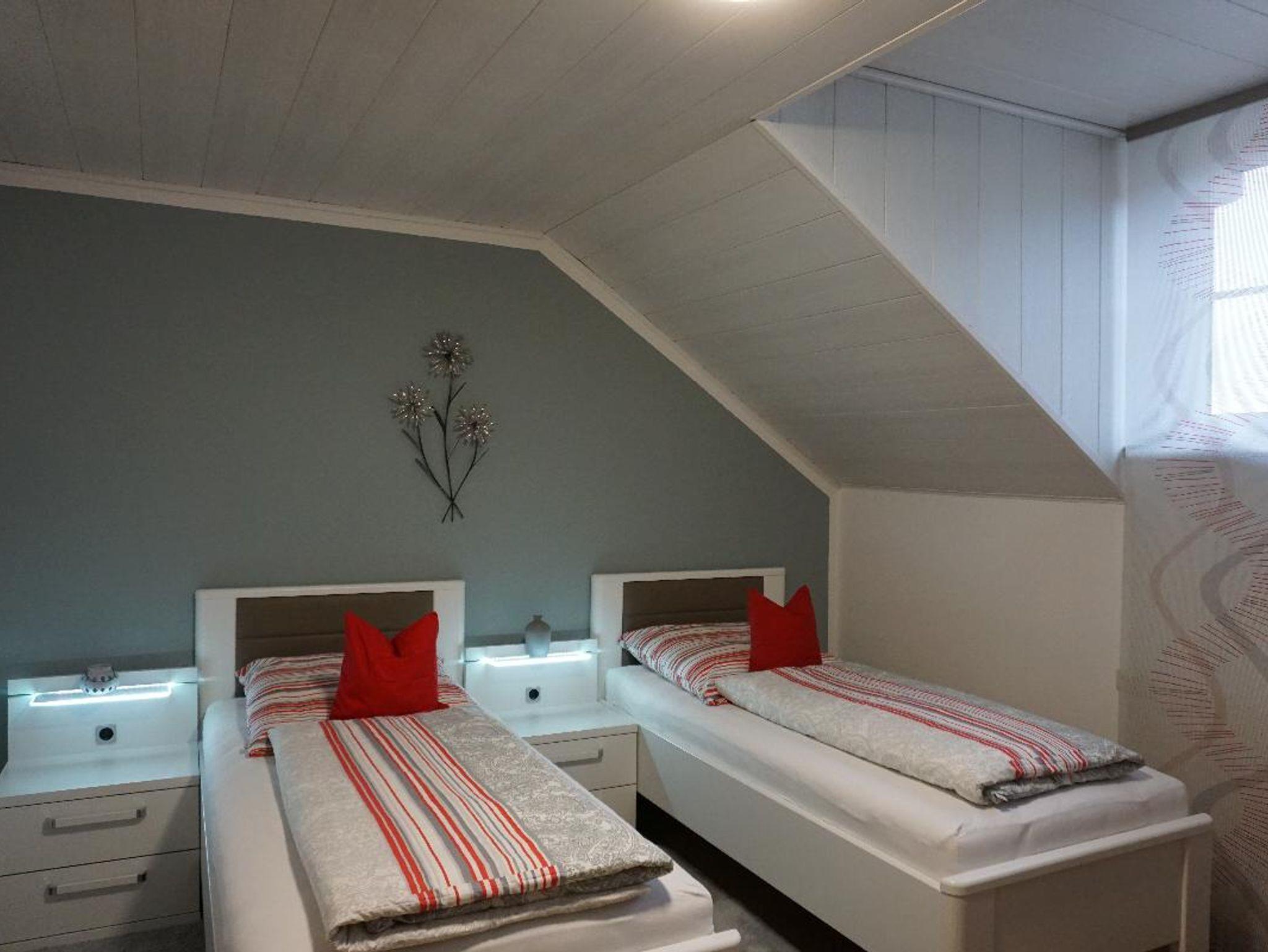 In unserer Ferienwohnung finden zwei bis fünf Personen Platz. Es gibt zwei Bäder, das eine ist ausgestattet mit Fußbodenheizung, Badewanne, Dusche, Waschbecken, Handtuchwärmer, und WC, das zweite Bad mit Dusche, WC und Waschbecken. Badetücher und Handtücher sind Inklusive. Die Küche ist eingerichtet mit Mikrowelle, Kaffeemaschine, Padmaschine, Toaster, Kühlschrank, Gefrierschrank, Wasserkocher. Wohnzimmer mit Sat-TV und Balkon mit kleinen Tisch und Stühle. Sofa ausziehbar, kann als Bett benutzt werden für zwei Personen. Ein Schlafzimmer mit Doppelbett, Zweites Schlafzimmer getrennte Betten sowie ein drittes Schlafzimmer mit 1 Einzelbett. Baby Reisebettchen, ohne Zudecke. Und Hochstuhl vorhanden. Bettwäsche im Preis enthalten.