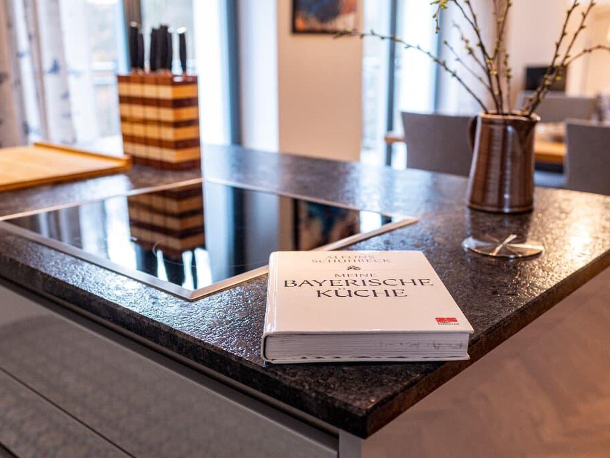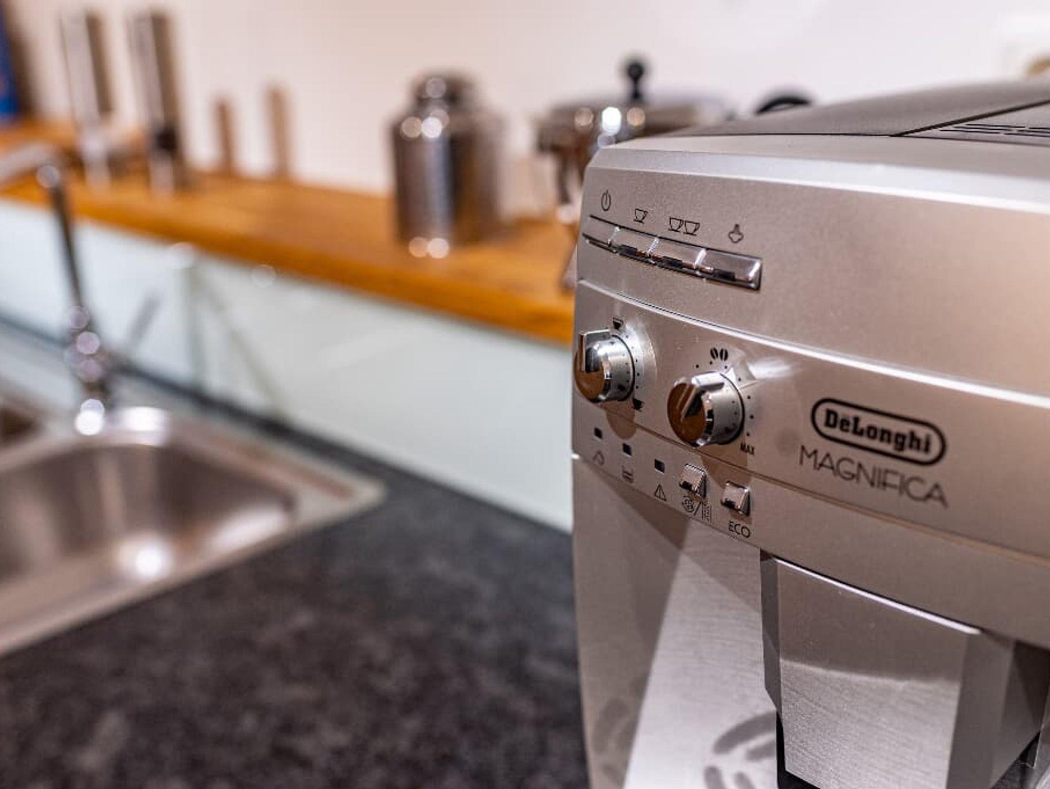 Die Küche ist mit Induktionskochfeld, Backofen, Geschirrspüler und Kaffevollautomat ausgestattet, elektrischer Wasserkocher und Toaster sind selbstverständlich.