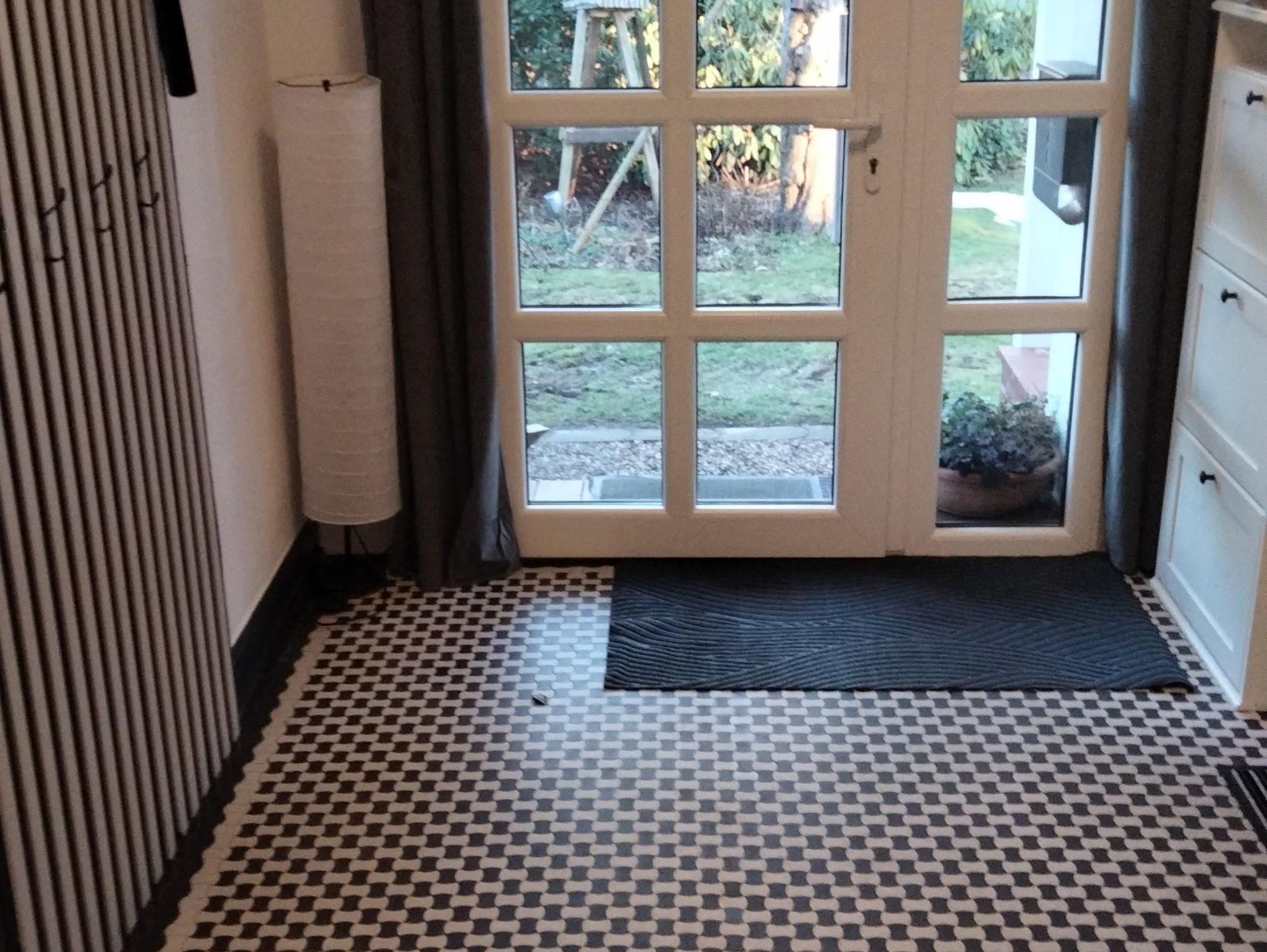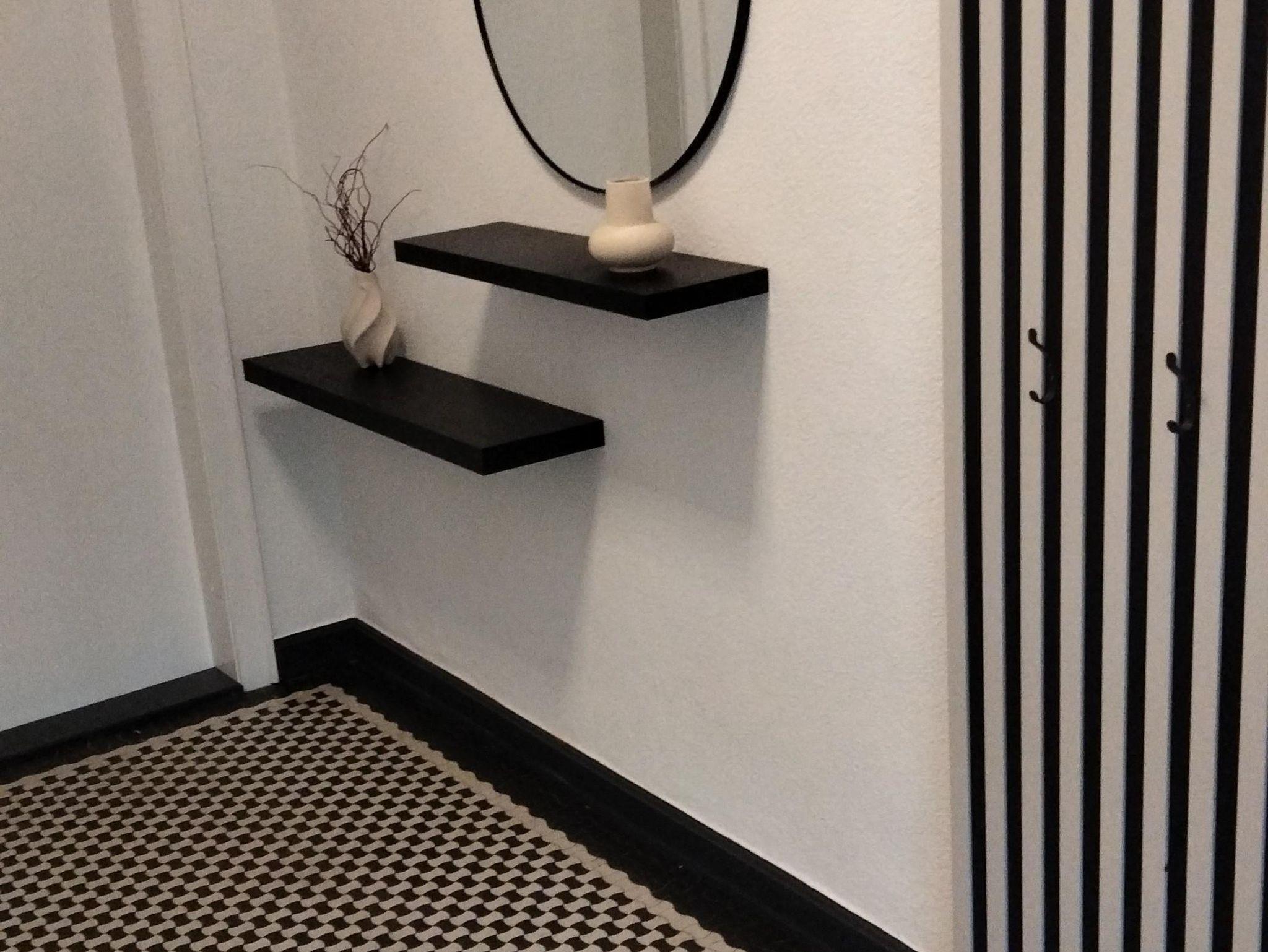 Unsere Ferienwohnung verfügt über einen großzügigen Eingangsbereich mit Garderobe, zwei Schlafzimmer mit jeweils einem Doppelbett, ein Wohnzimmer mit Schlafsofa, eine Küche mit Essplatz, ein Badezimmer mit angrenzendem HWR und eine Terrasse.