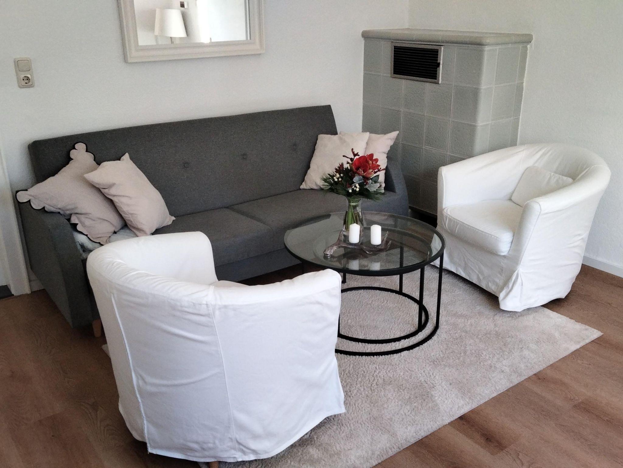 Die zwei Schlafzimmer und das Wohnzimmer sind jeweils mit einem Fernseher ausgestattet, ein gemütlicher Kachelofen sorgt für behagliche Abende (Holz wird gestellt). Für unsere kleinen Gäste stellen wir gern ein Reisebett zur Verfügung.