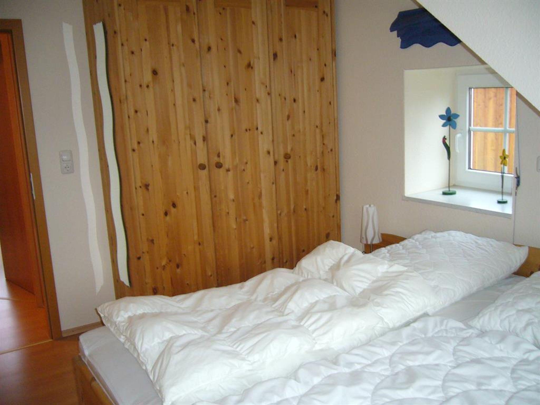 Nebenan Elternschlafzimmer mit Doppelbett.