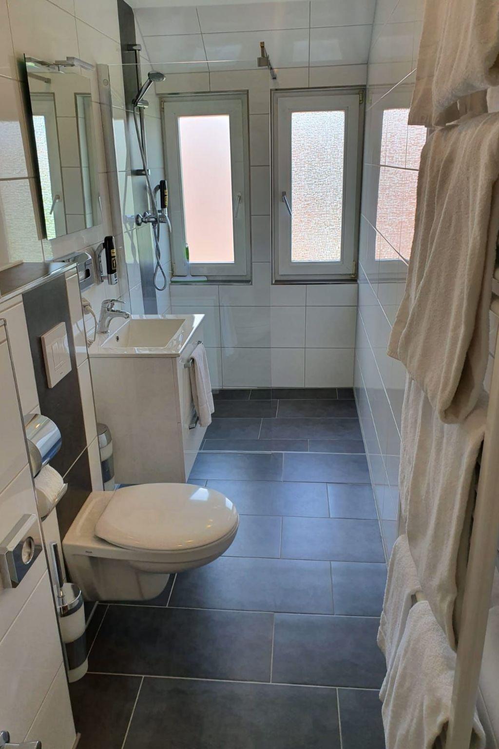 In each of our flats, which were refurbished in 2019, you can expect a well thought-out interior designed to make your stay as pleasant as possible. In addition to the fully equipped kitchen, which has everything your heart desires from a cooker and fridge to a capsule coffee machine and kettle, you will also find amenities such as flat-screen TVs, free high-speed WiFi and a cosy living room with a sofa and desk. A washing machine and tumble dryer are available for communal use in the building to complete the comfort during your stay.