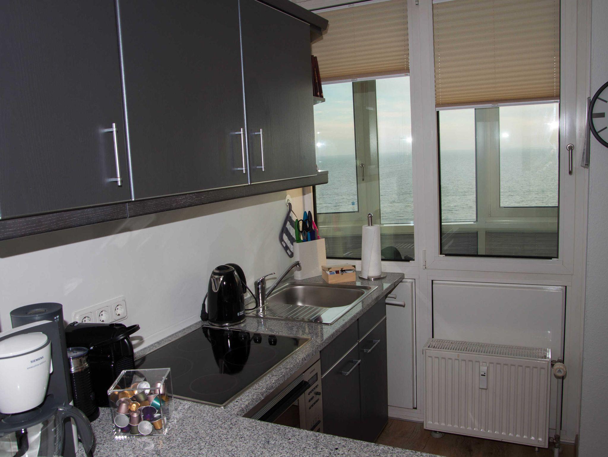 Der stilvoll eingerichtete offene Wohn-, Essbereich ist mit einer gemütlichen Sitzecke und Fernseher (102 cm diagonal), Player und Musikanlage ausgestattet. Die hochwertig ausgestattete Küche lässt kaum einen Wunsch offen. Cerankochfelder, ein Backofen inklusive Microwellenfunktion, Geschirrspüler, Kaffeemaschine, Wasserkocher, Toaster und ein Kühlschrank mit Gefrierfach bieten die Möglichkeiten kulinarisch zu zaubern.