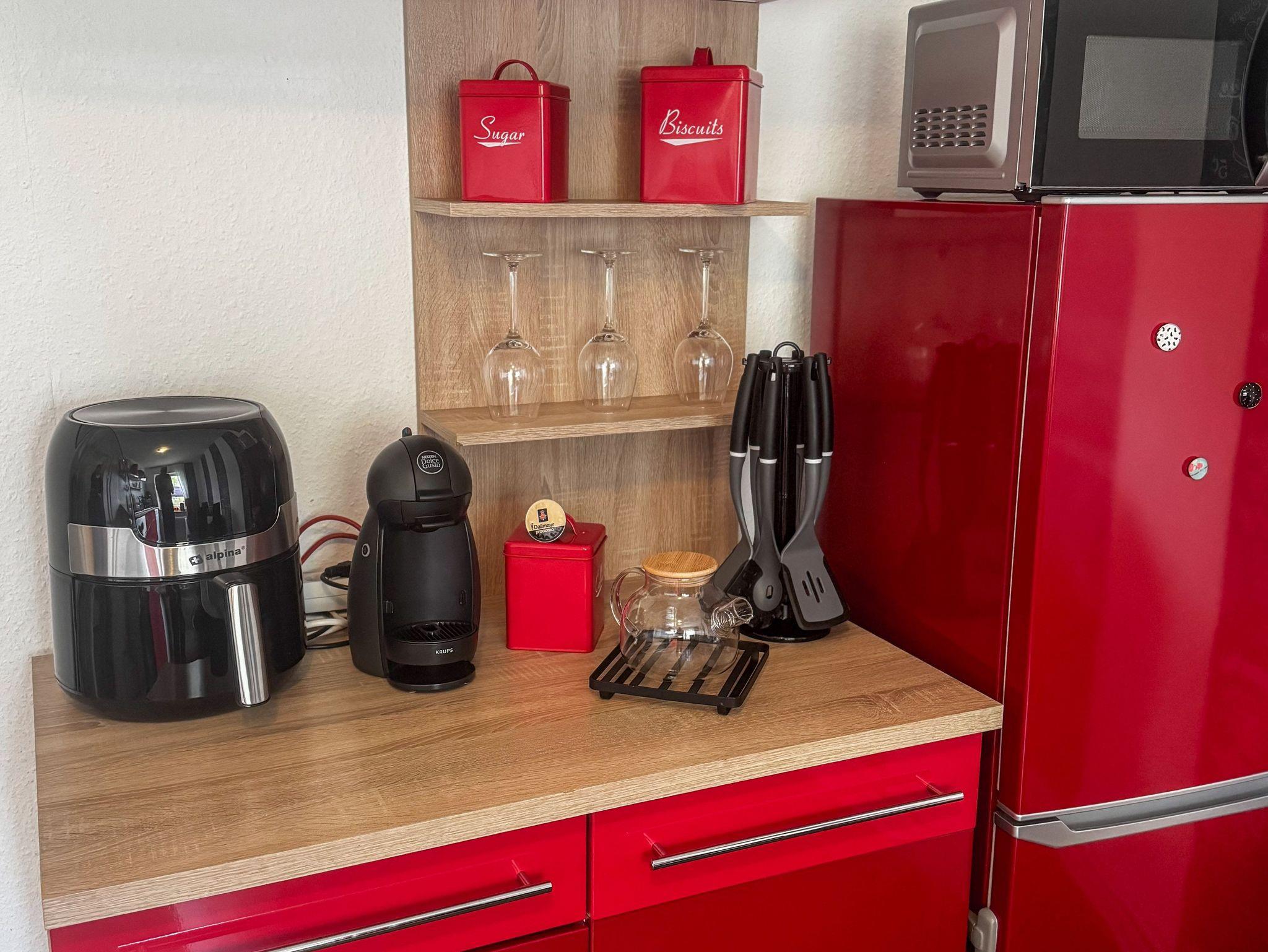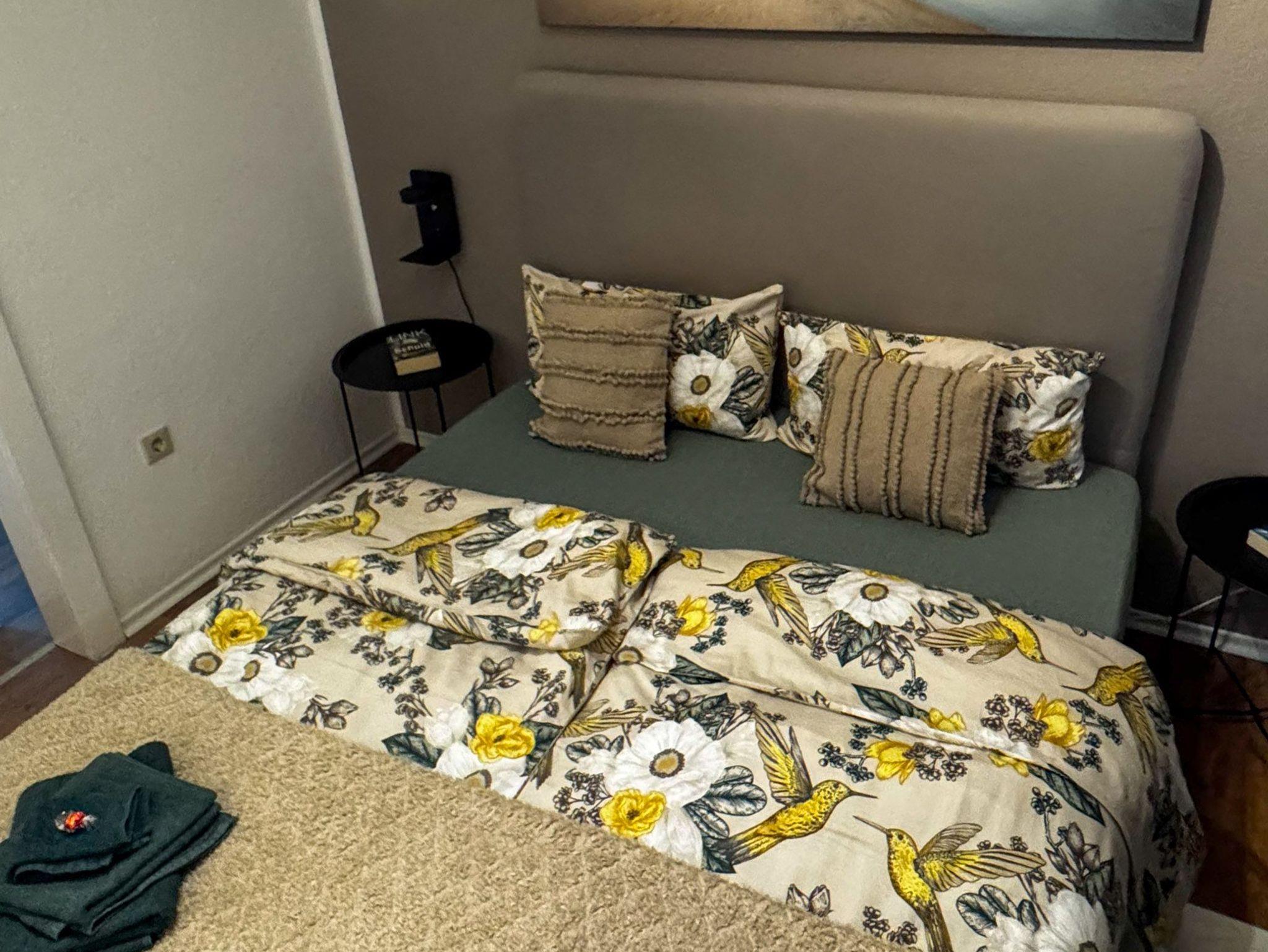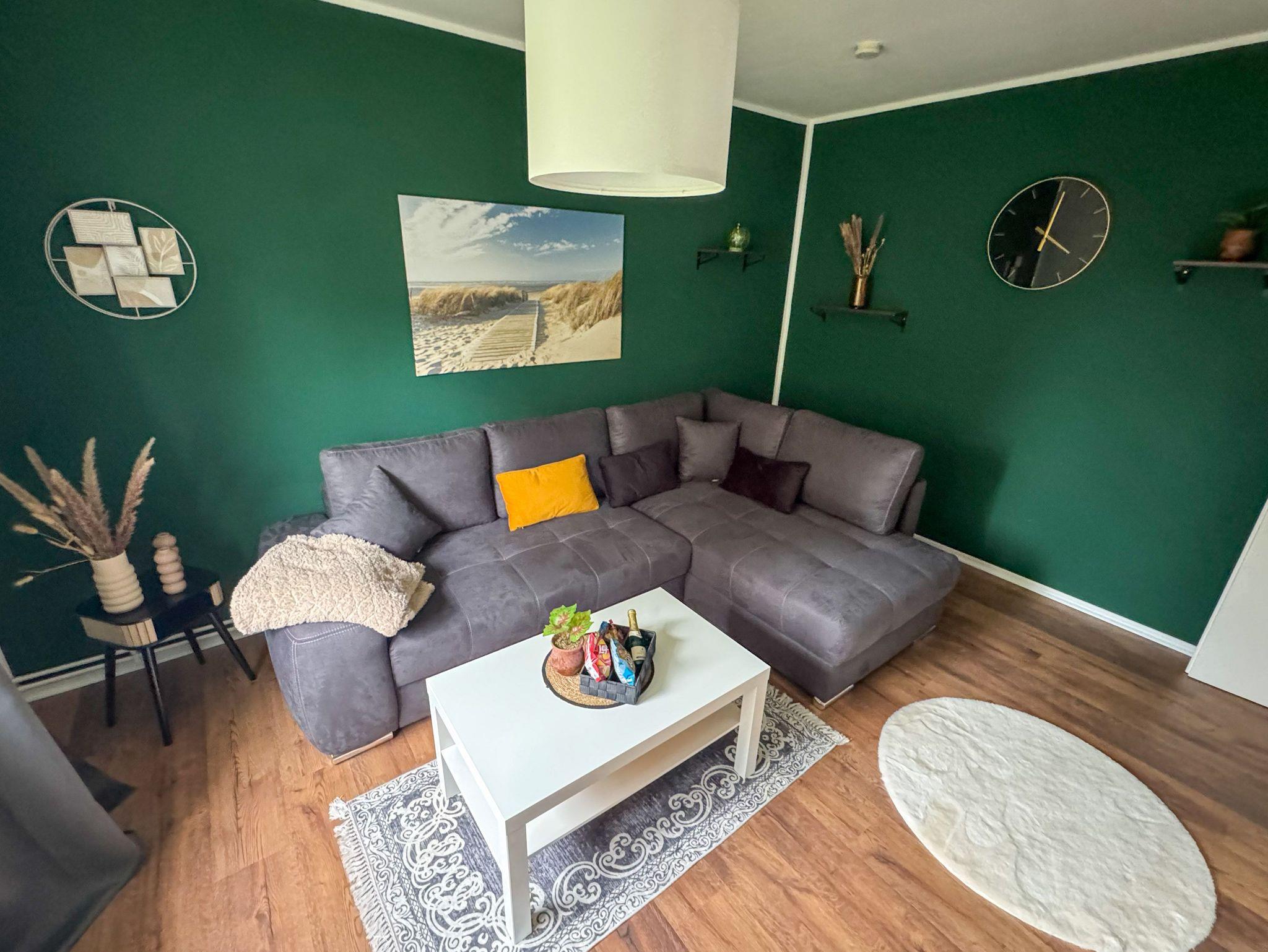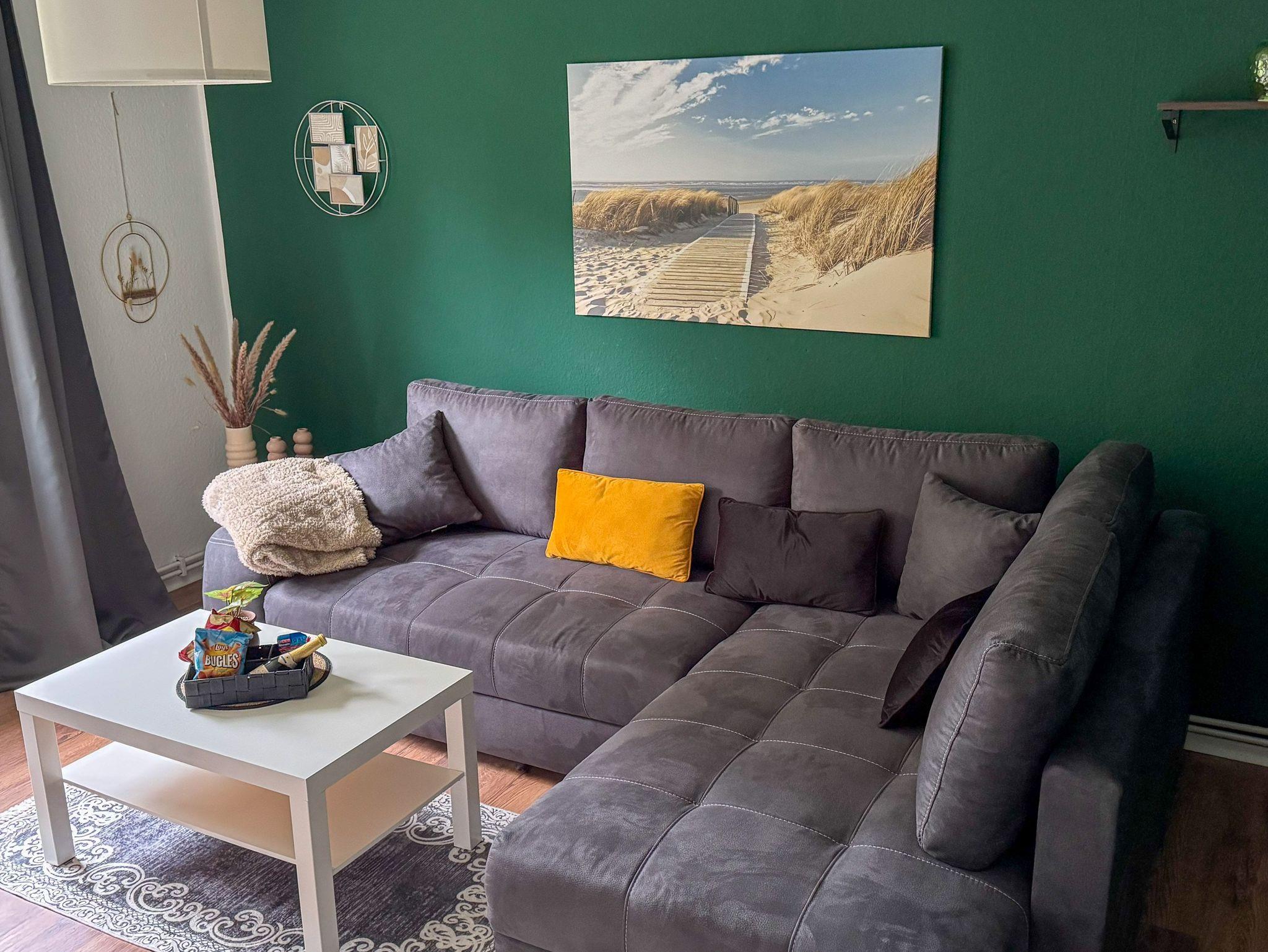 Farbenfrohe, gemütliche Ferienwohnung für maximal 2 Personen ab 16 Jahren mit einer umfangreichen Ausstattung im beliebten Stadtteil Voslapp bietet Ihnen zusätzlich eine Freisitz im Grünen - gerne darf der zum Haus gehörige Garten mitgenutzt werden, Das Schlafzimmer beherbergt ein Boxspringbett 1,60 x 2,00 m. Die Küche ist voll ausgestattet mit einem 4 Platten-Herd, Kühl-, Gefrierkombination, Geschirrspüler, Kaffeemaschine, Kaffee-Pad Maschine, Wasserkocher, Toaster, Mikrowelle, Air-Fryer sowie einem Digital-Radio. Im Tageslichtbad mit Dusche ist eine Waschmaschine untergebracht. Gerne dürfen Sie den Wäscheboden zum Trocknen benutzen.
