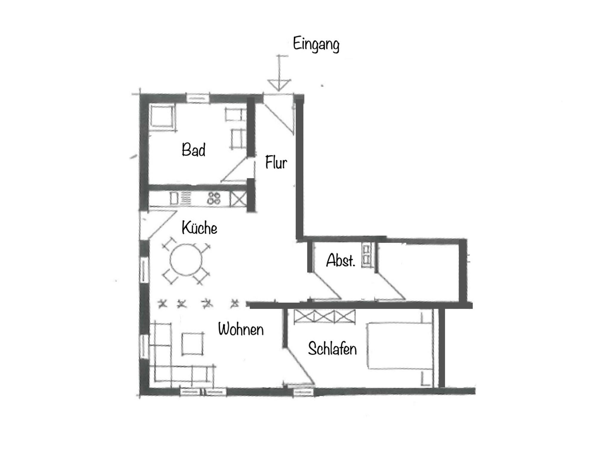 Ein Großteil dieser Wohnung war früher die Gute Stube des ursprünglichen Bauernhauses. Diese Wohnstube wurde damals nur zu besonderen Anlässen wie Weihnachten, Ostern oder Geburtstagen genutzt.