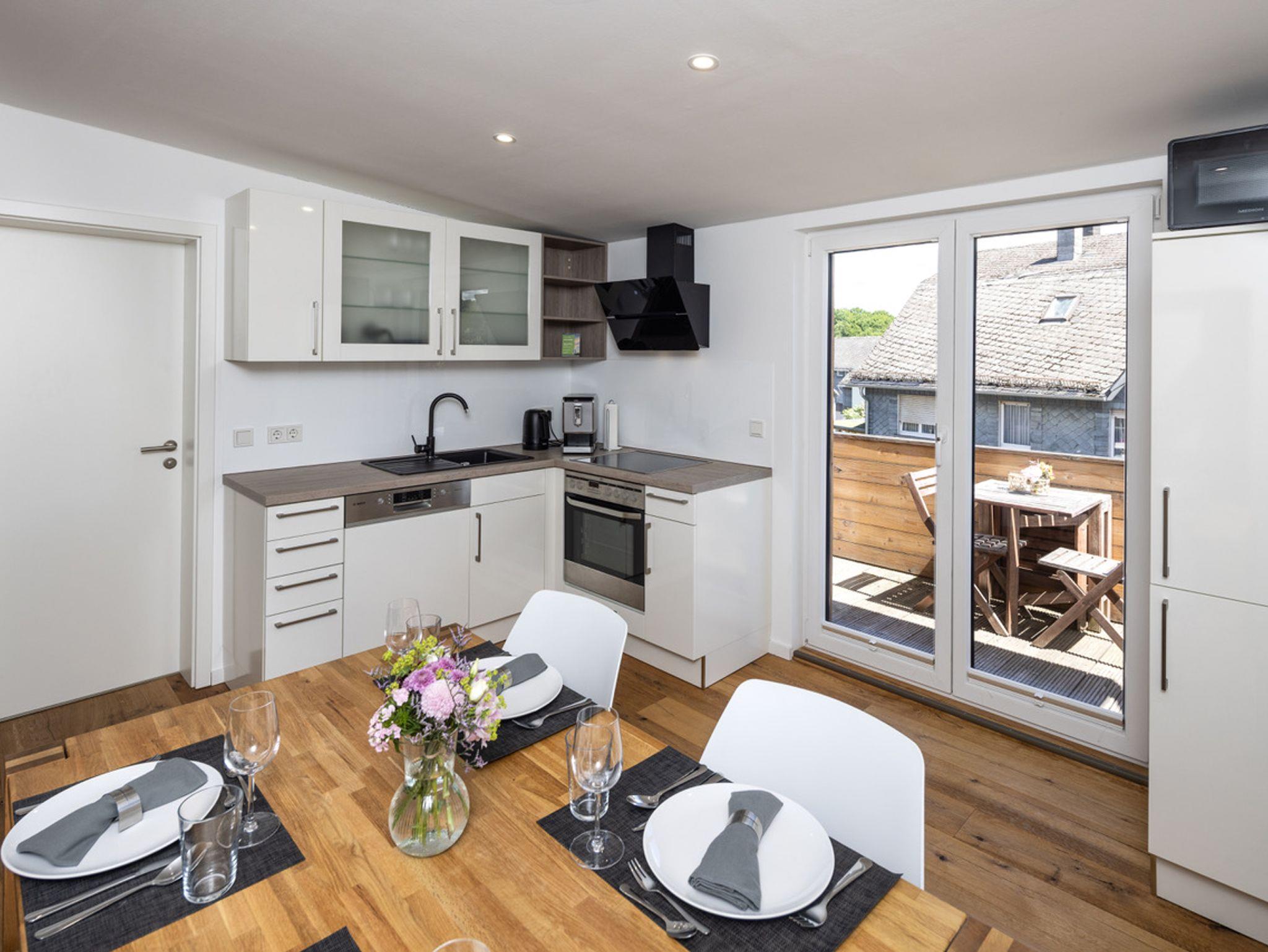 In der Wohnung stehen Ihnen eine vollausgestattete Küche mit einem geräumigen Essbereich, ein gemütlicher Wohnbereich mit SAT-TV, Blu-ray Player und Stereoanlage, ein Schlafzimmer mit Queen-Size Bett, ein weiteres Schlafzimmer mit einem ausziehbarem Alkovenbett sowie ein modernes Bad mit bodengleicher Regendusche, Föhn und Kosmetikspiegel zur Verfügung.