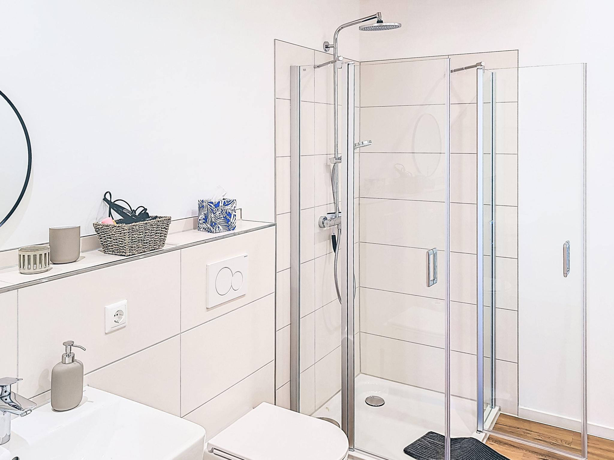 "Deich-Liebe", 2-room apartment 53 m2, on the upper floor. Comfortable and cosy furnishings: large living/dining room with 1 sofabed (140 cm, length 200 cm), TV and flat screen. Exit to the terrace. 1 room with 1 double bed (180 cm, length 200 cm). Large, open kitchen (oven, dishwasher, 4 ceramic glass hob hotplates, toaster, kettle, electric coffee machine) with dining table. Shower/WC. Gas heating, underfloor heating. Large terrace 10 m2. Terrace furniture. Very beautiful panoramic view of. Facilities: Internet (WiFi, free). Please note: maximum 2 pets/ dogs allowed. Smoke alarm.