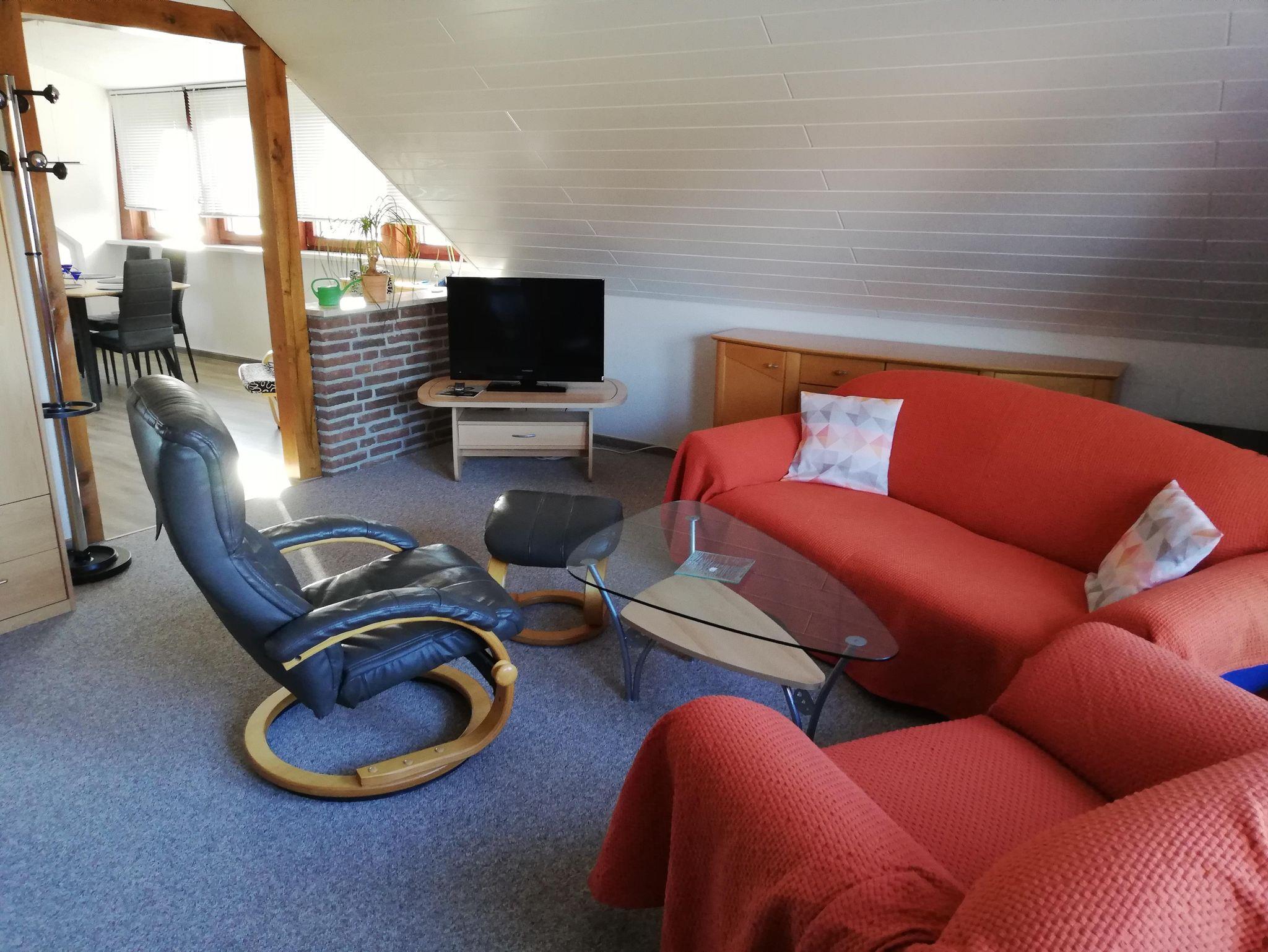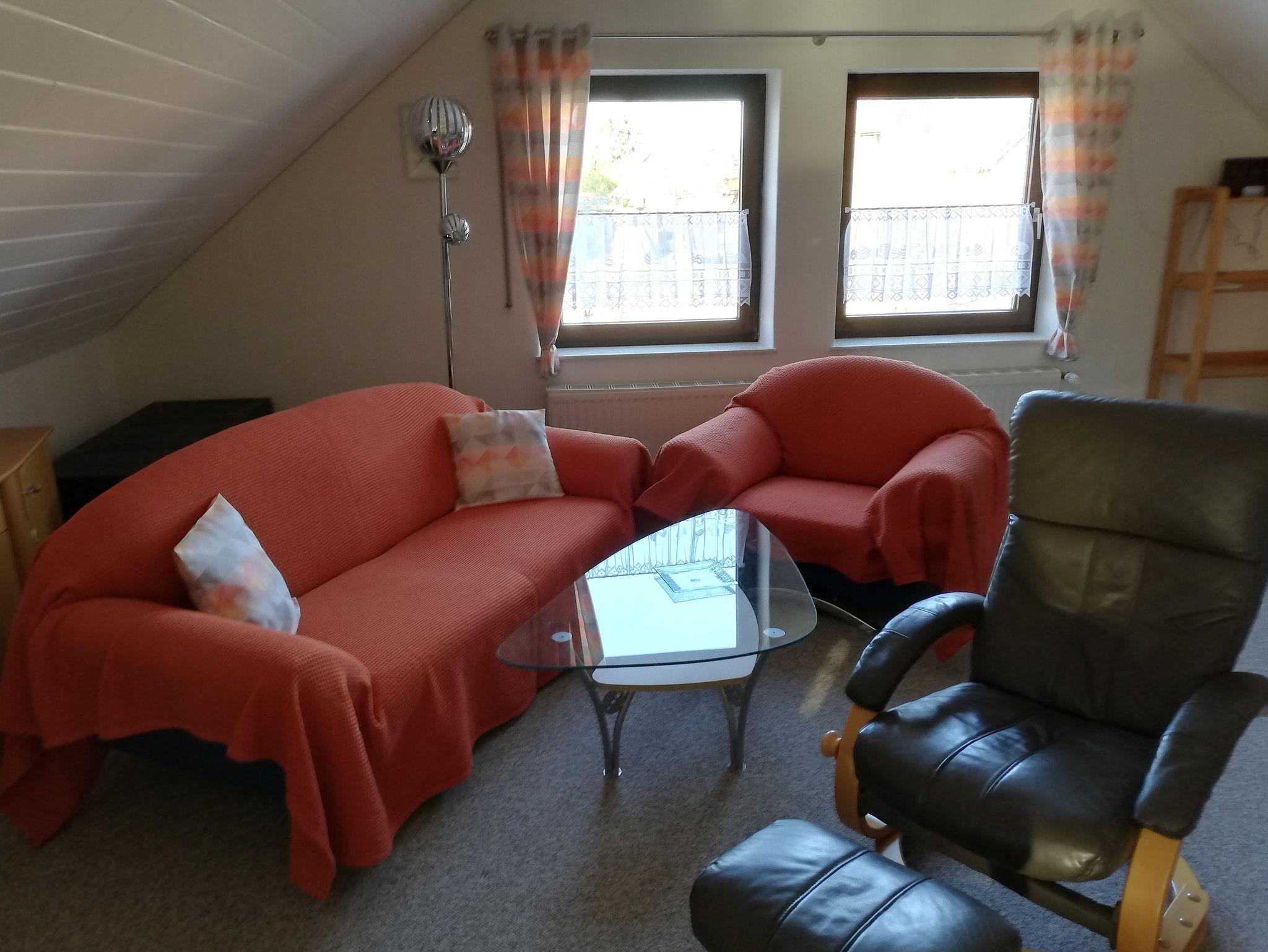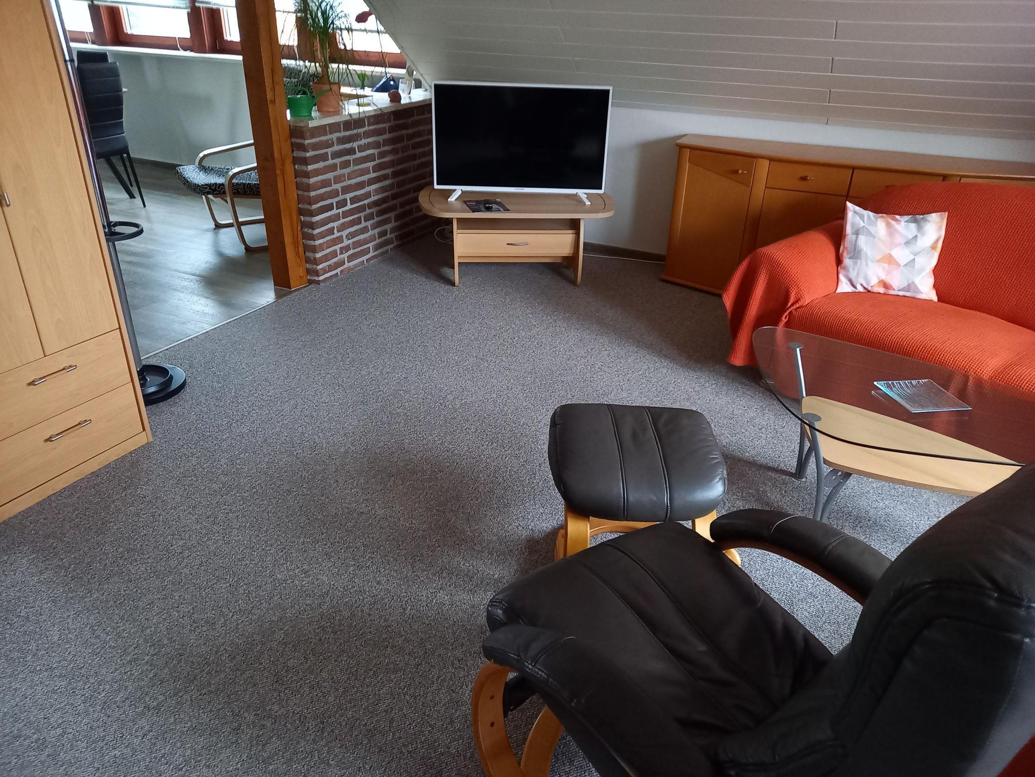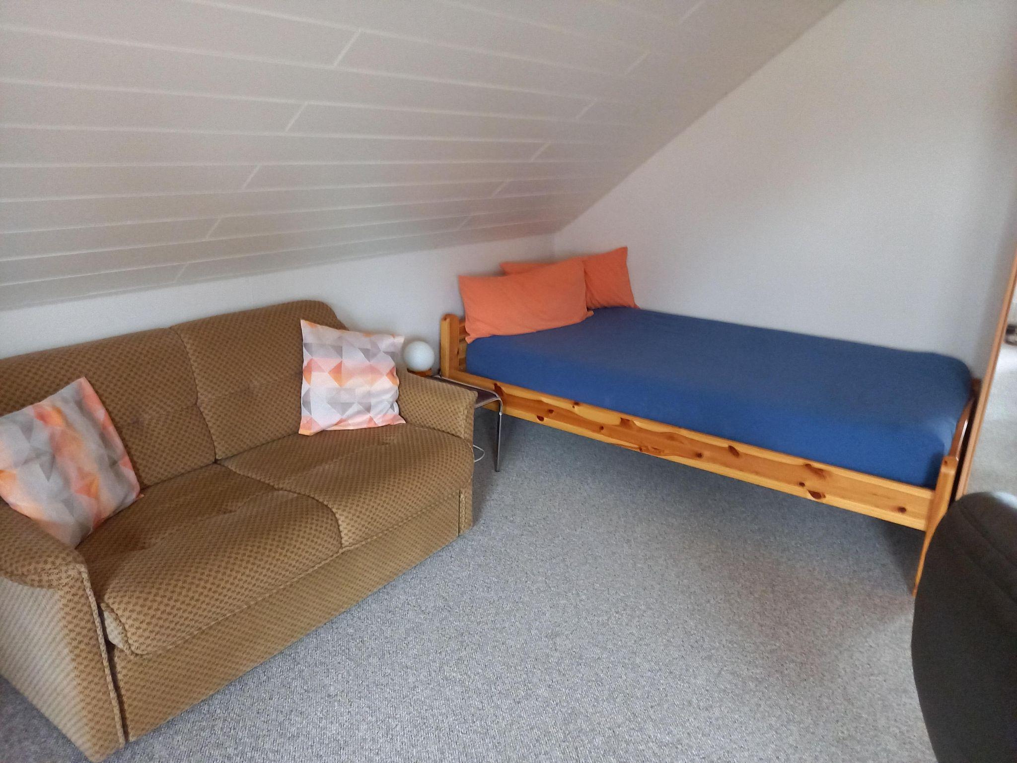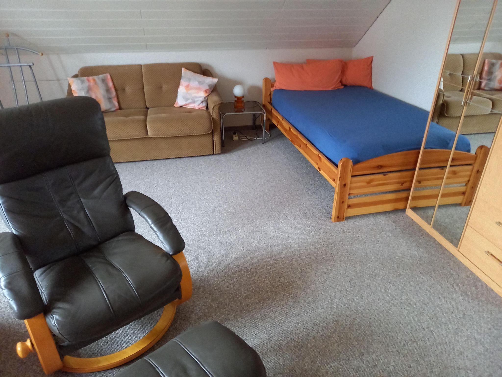 Wohnzimmer: Couchgarnitur, zusätzliches Schlafsofa (140cm) für 1-2 Personen und separates Einzelbett, SAT TV, Fernsehsessel, Stereoanlage
