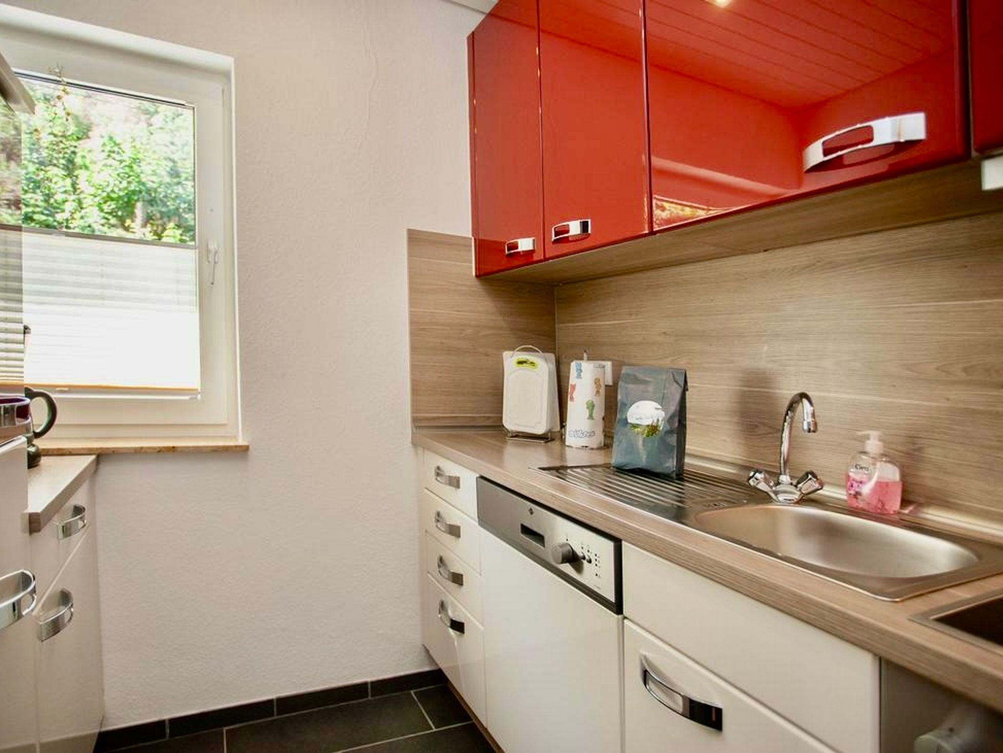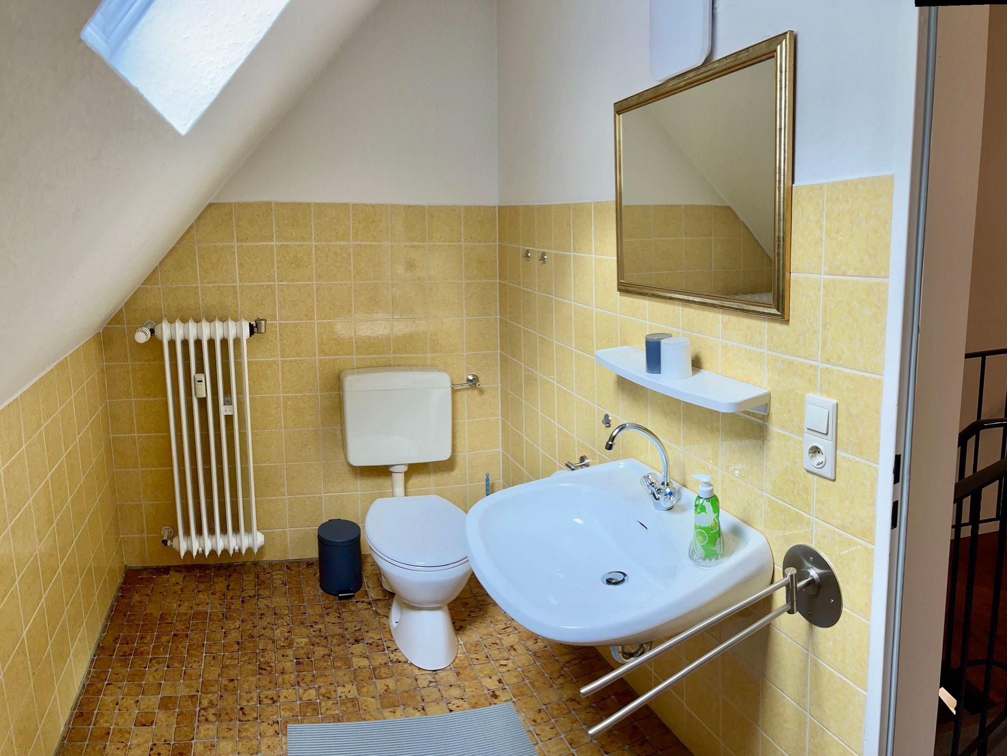 Sie betreten die Wohnung über den zentral, gelegenen Eingang an der oberen Burgstraße, Hausnummer 15e. Direkt hinter der Eingangstür gelangen Sie über einen kleinen Flur links zur Küche und geradeaus in Wohn-/ Esszimmer. Vom Wohnzimmer erreichen Sie den großzügigen Balkon. Über die Wendeltreppe gelangen Sie sowohl ins Untergchoß, als auch in das Obergeschoß. Im Untergeschoß befindet sich das große Schlafzimmer, mit Doppelbett. Das Zimmer verfügt über große Fenster und einem schönen Ausblick. Unten befindet sich auch das große Bad. Das Bad verfügt über eine Duschwanne mit Duschabtrennung. WC und Waschbecken. Diverse Aufhängemöglichkeiten für Handtücher. Im Obergeschoß befindet sich das zweite Schlafzimmer, mit zwei getrennt gestellten Betten. Das Zimmer verfügt über ein großzügiges Dachfenster und einem blickdichten Rollo. Oben befindet sich ein zweites, kleines Bad. Es verfügt über ein WC und ein Waschbecken.