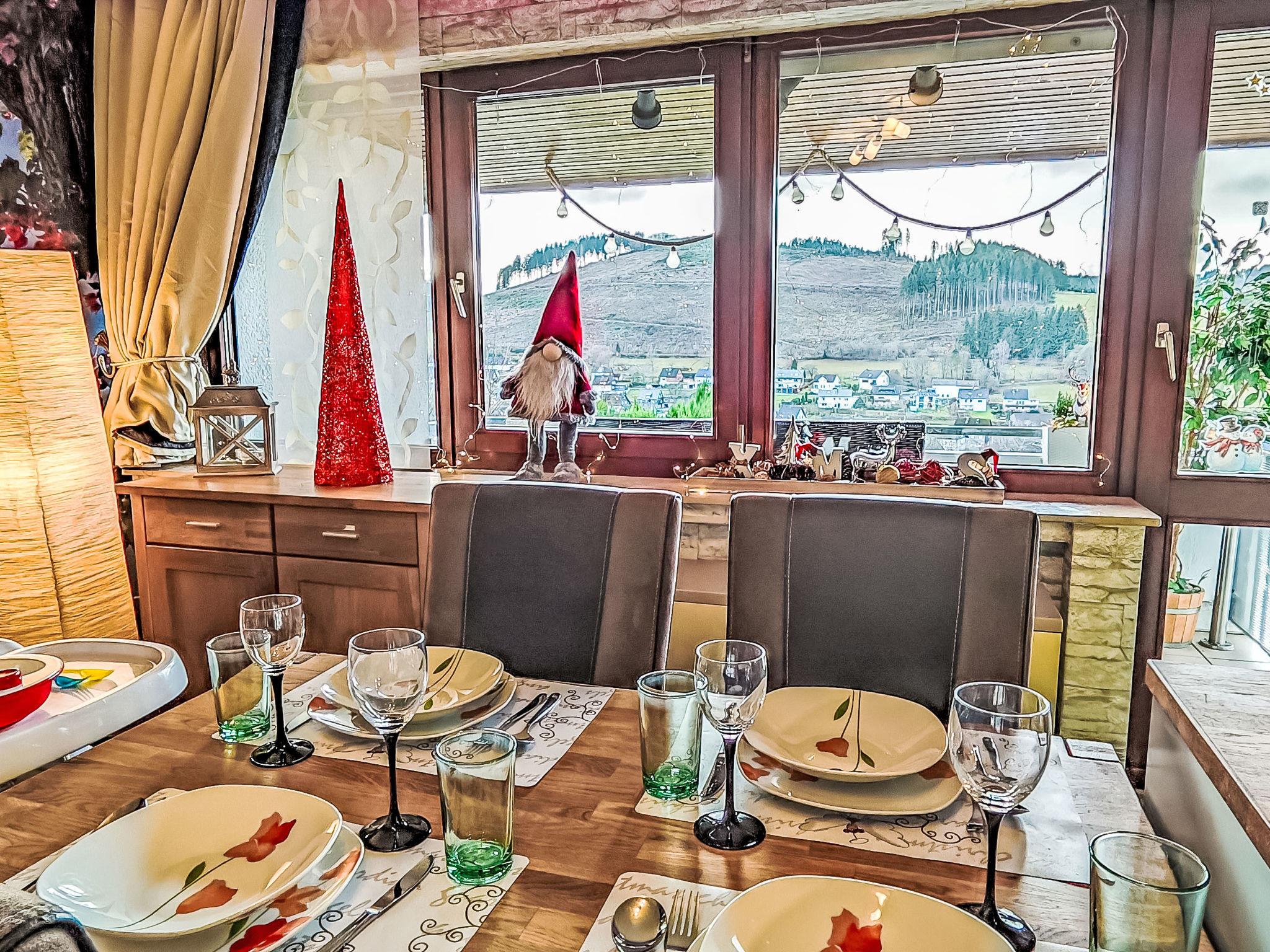 Niedersfeld 8 km from Winterberg: Apartment house, renovated in 2021. In a sunny, elevated position on a slope. In Winter: please take snow chains. Parking space n 3 at the house. Shop 2 km, supermarket 2 km, restaurant 1 km, bus stop 700 m, railway station 12 km, sandy beach 300 m, outdoor swimming pool 8 km. Golf course (9 hole) 8 km, tennis 1 km, ski lift 2 km, chair lift 8 km, cross country ski track 2.5 km, ice rink 8 km, children's playground 1.5 km. Nearby attractions: Ruhrquelle 7 km. Well-known ski regions can easily be reached: Skiarena Winterberg 8 km. The owner does not accept any youth groups.