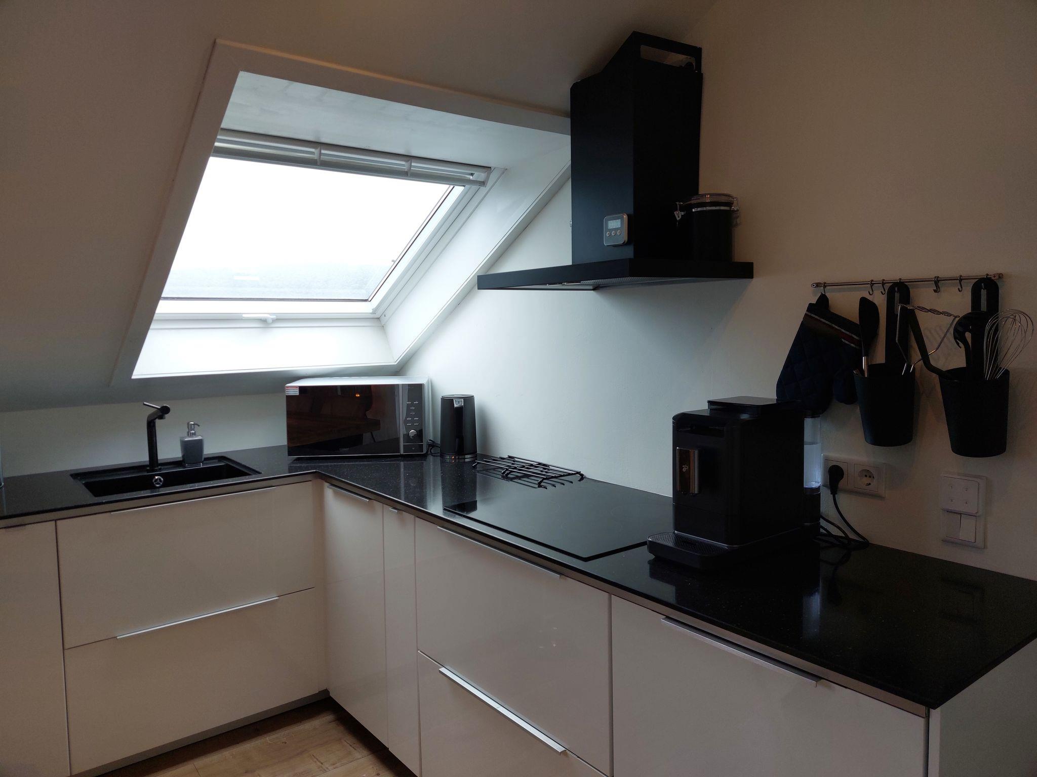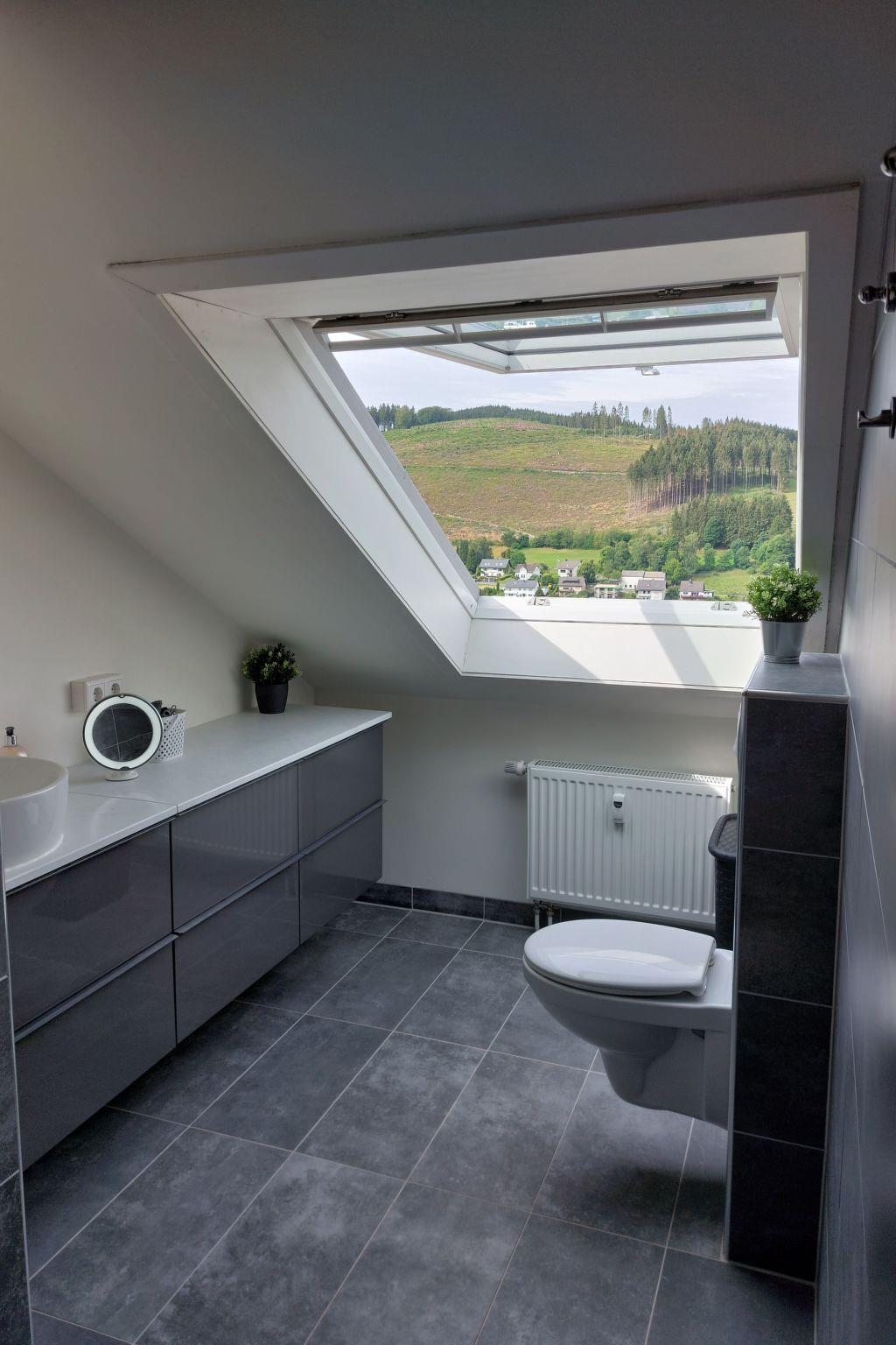 Bathroom: Bathroom with large skylight (with a view of the mountains), shower, hairdryer, etc. Bed linen and towels are provided.