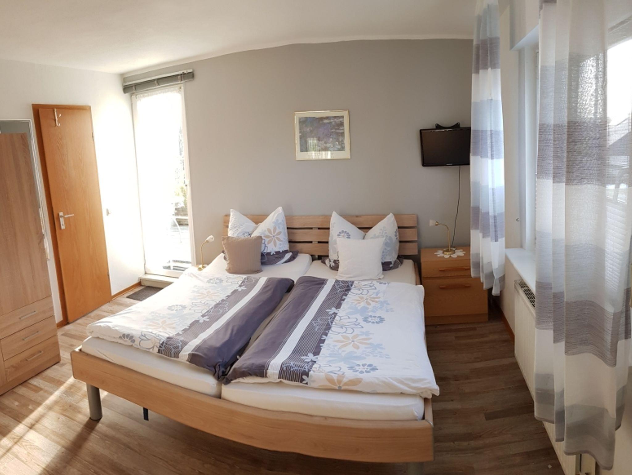 inkl. ein oder zwei Bädern. Unsere zwei Doppelzimmer mit eigenem Bad (DU/WC), Doppelbett und Flachbildschirm TV bieten wir mit herzhaftem Frühstücksbüfett an. Gern bieten wir Ihnen Brötchenservice auf Wunsch auch für die Ferienwohnung.