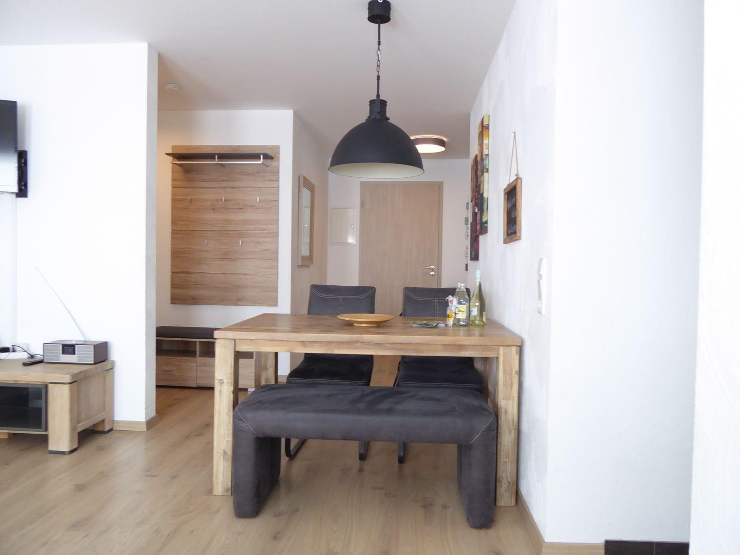 Ein Highlight des Apartments ist die voll ausgestattete Küche, die Ihnen die Freiheit gibt, Ihre Lieblingsgerichte zuzubereiten. Genießen Sie Ihre Mahlzeiten am großen Esstisch oder auf der riesigen Terrasse, die nicht nur viel Platz zum Entspannen bietet, sondern dank des weitläufigen Blicks auch ein wunderbares Ambiente schafft.