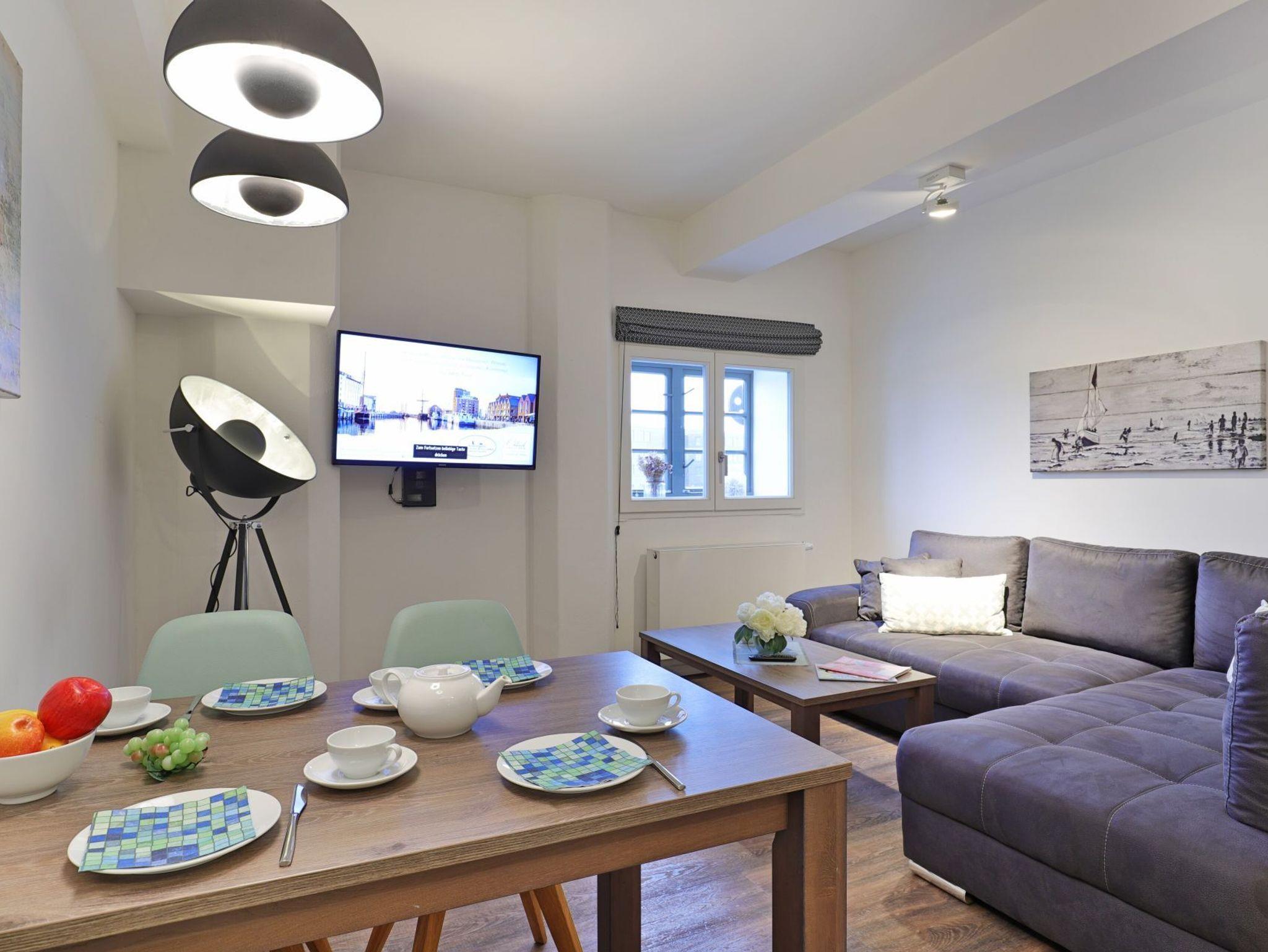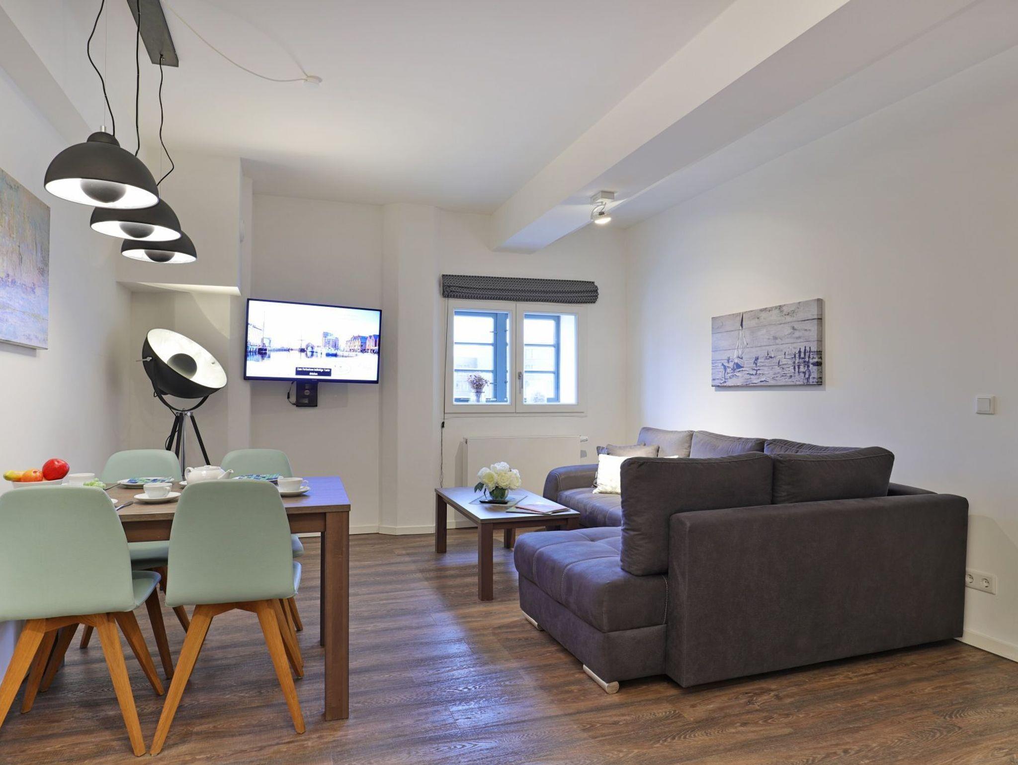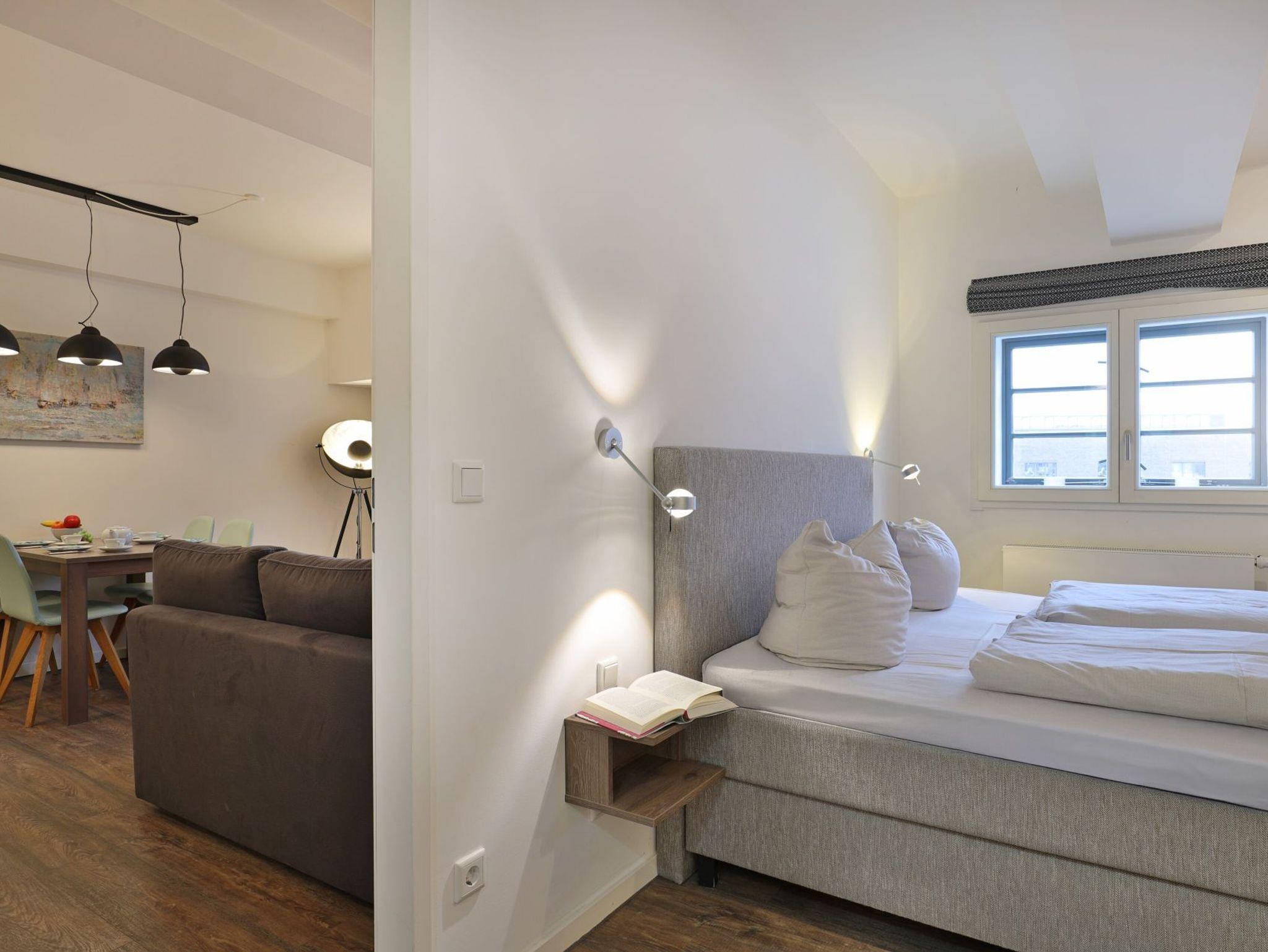 Dieses stilvoll eingerichtete 2-Zimmer-Appartement befindet sich in der 1. Etage und bietet mit seinen 48 m² Platz für 4 Personen. Das Appartement hat einen exklusiven eingerichteten Wohn- und Essbereich mit Fernseher und einer voll ausgestatteten integrierten Küche (Geschirrspüler, Mikrowelle, Backofen, Kühlschrank, Kaffeemaschine, Wasserkocher u.v.m.). Das elegante Schlafzimmer ist mit einem Doppelbett und einem Kleiderschrank eingerichtet. Des Weiteren gibt es ein modernes Duschbad. WLAN steht Ihnen kostenfrei zur Verfügung. Bei Anreise ist ein Bett für 2 Personen bezogen und Handtücher liegen für Sie bereit.In unmittelbarer Nähe sind öffentliche Parkplätze vorhanden.