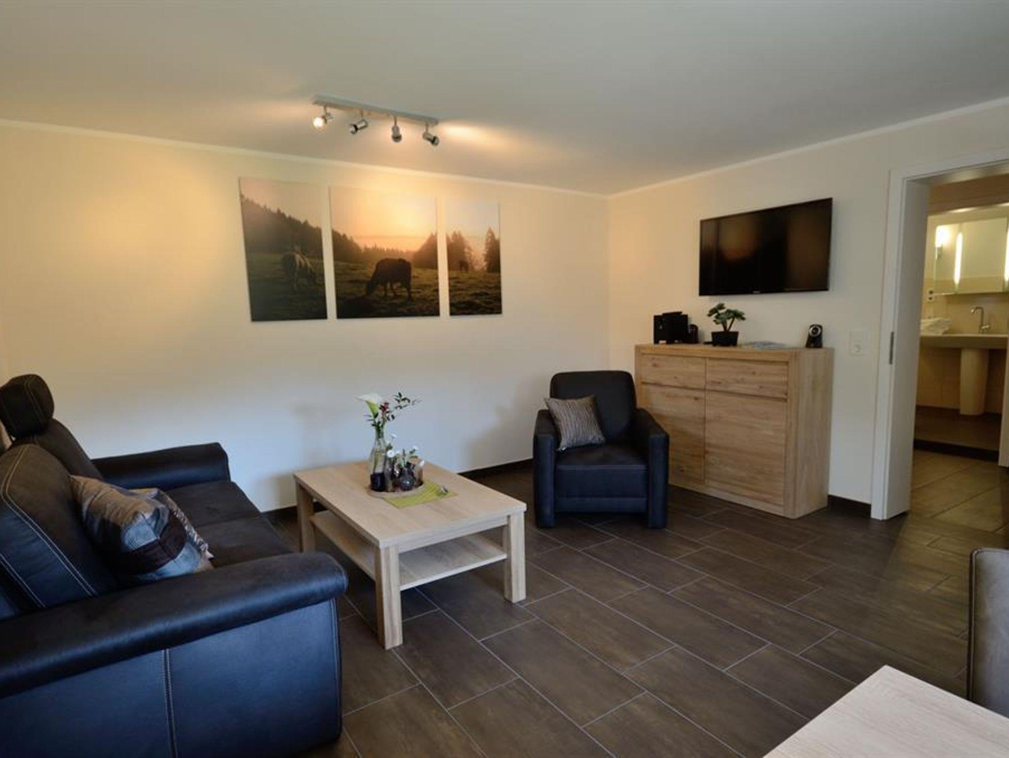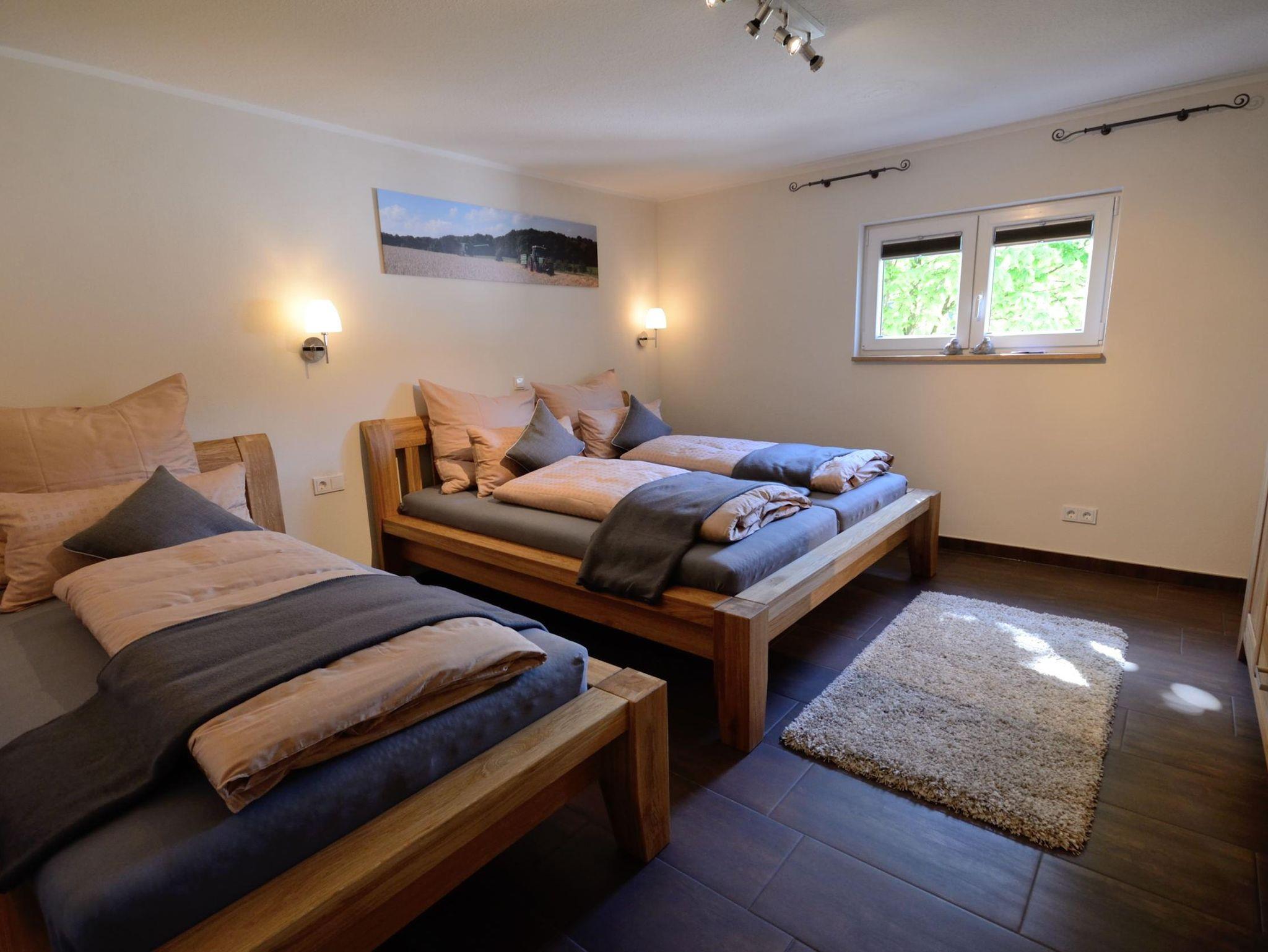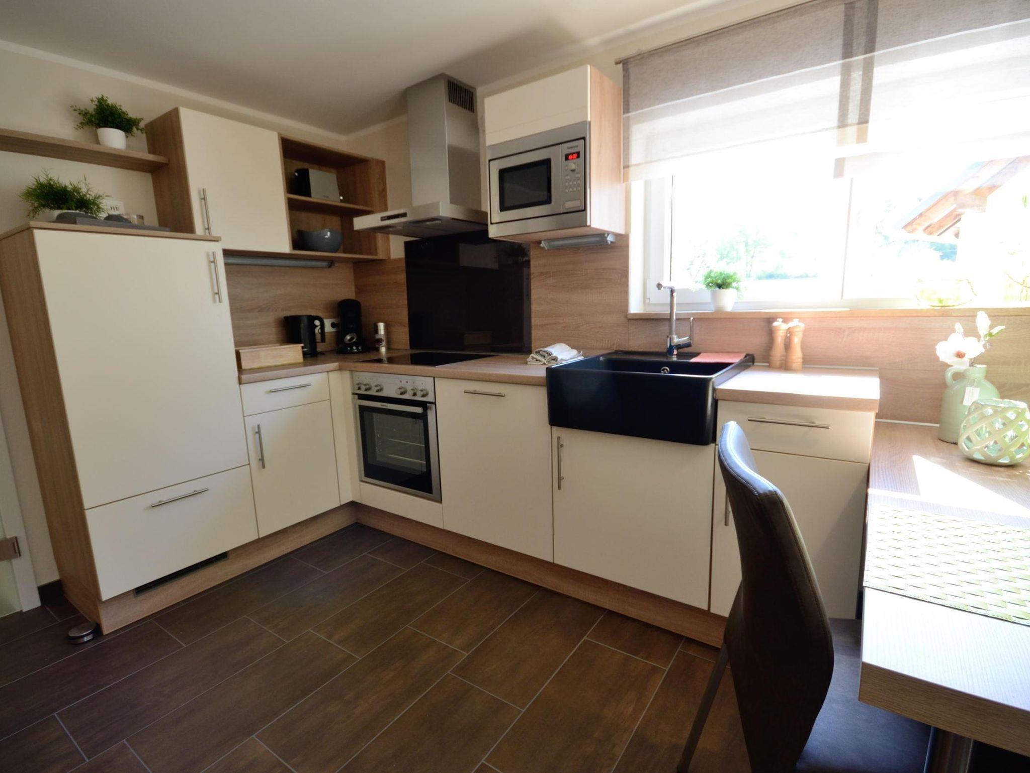 Die Wohnung befindet sich im Erdgeschoss und ist behindertenfreundlich ausgestattet. Unsere volleingerichtete Küche ist mit Backofen, Ceranfeld, Mikrowelle, Spülmaschine, Senseo-Kaffeepadmaschiene, Toaster und Wasserkocher ausgestattet. Im gemütlichen Wohnbereich mit Massivholzmöbeln und Sofa ausgestattet bieten wir Ihnen TV / Radio, Telefon und WLAN mit an. Das komfortable Badezimmer ist mit ein großer bodenbündiger Regendusche, exklusiven Sanitär Einrichtungen und Fußbodenheizung ausgestattet das zum Verweilen einlädt. Das Schlafzimmer ausgestattet mit Massivholzbetten und hochwertigen Matratzen incl. Bettwäsche laden zum träumen ein.