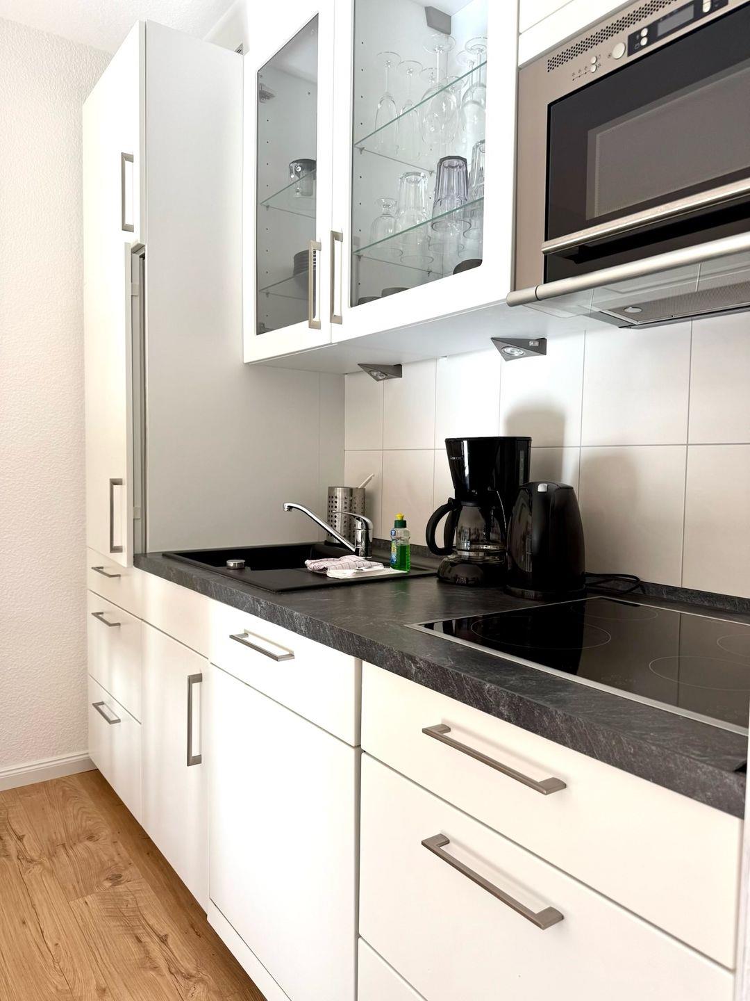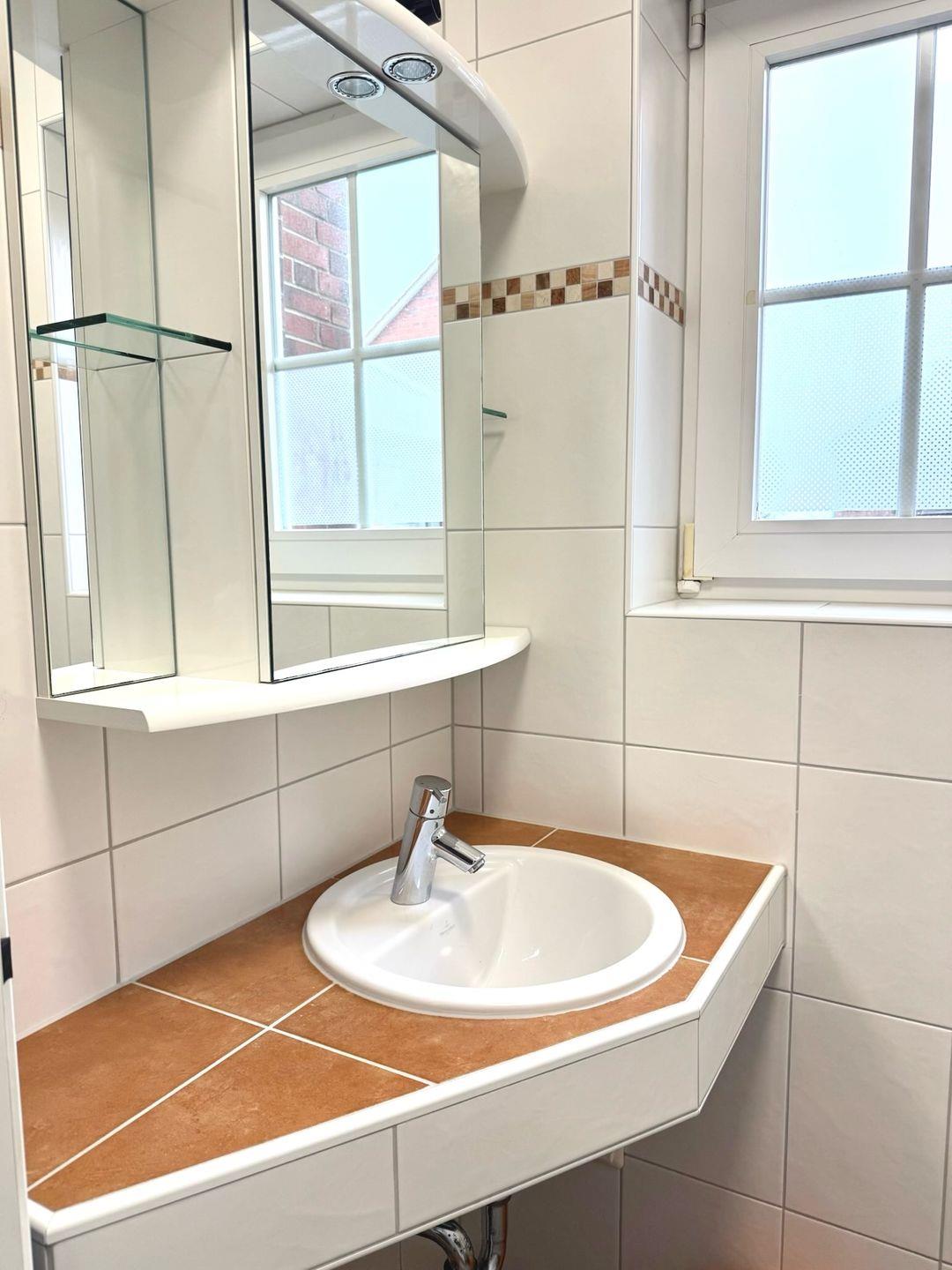 Die Innenausstattung der Wohnung verfügt über 1 Wohnraum mit WLAN, Sat-TV und offener Küche, 1 Schlafzimmer, 1 Badezimmer mit Dusche und WC; eine Süd-Terrasse mit Gartenmöbeln (April bis Oktober) und kleinem Meerblick. Die Couch im Wohnzimmer kann bei Bedarf auch als Schlafstätte genutzt werden. Im Keller befinden sich eine Münz-Waschmaschine und ein Münz-Trockner zur Gemeinschaftsnutzung, 1 PKW-Stellplatz ist vorhanden. Haustiere sind herzlich willkommen, dürfen aber nicht ins Schlafzimmer.