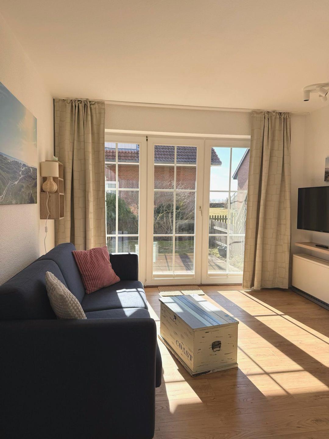 Die Ferienwohnung "Sand & Seele" im Erdgeschoss des Hauses "Südspitze 18" in Wittdün auf Amrum ist eine ansprechende 2-Zimmer-Ferienwohnun mit Terrasse (ca. 36 qm Grundfläche) mit Schlafmöglichkeiten für 2 Erwachsene und 1 Kind, die über wenige Treppenhausstufen erreichbar ist.