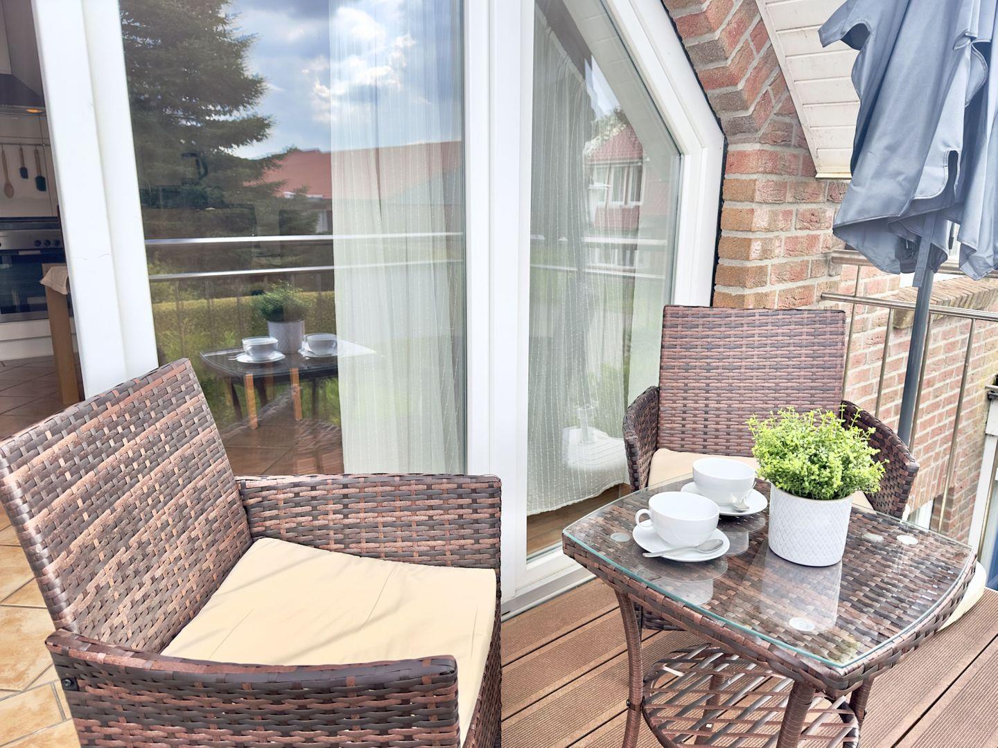Der Balkon bietet einen ruhigen Ort, um bei einem Glas Wein den Tag ausklingen zu lassen und die friedliche Umgebung zu genießen.