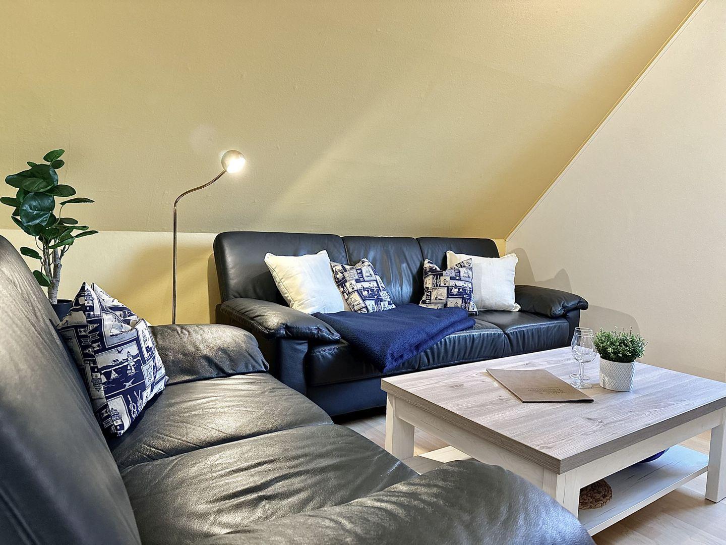 Das lichtdurchflutete Wohnzimmer mit warmer Holzoptik lädt sofort zum Wohlfühlen ein. Auf den kuscheligen Sofas können Sie in ein gutes Buch eintauchen, einen spannenden Film genießen oder einfach die Seele baumeln lassen.