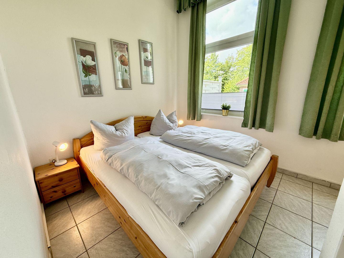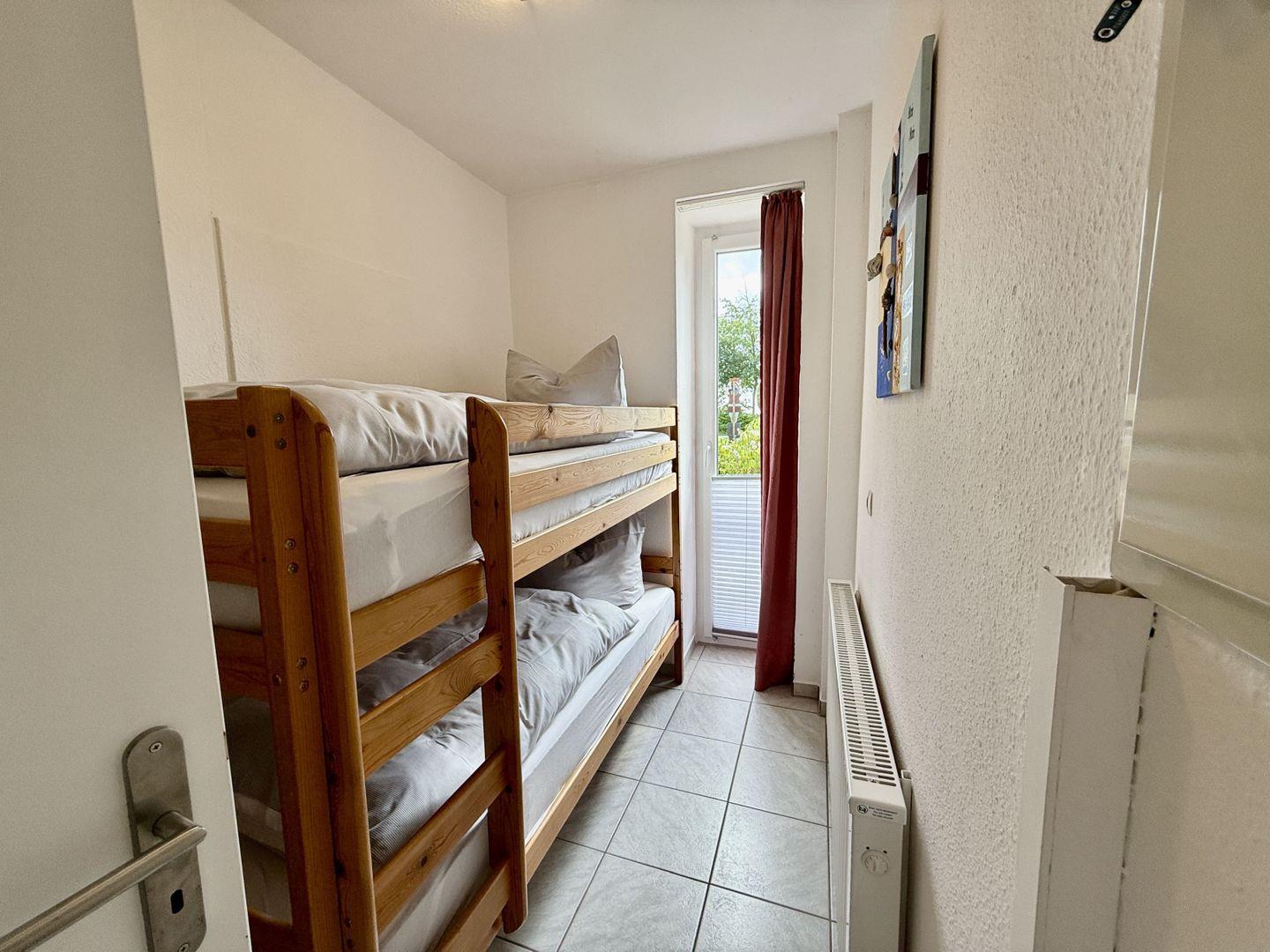 Das erste Schlafzimmer besticht durch ein komfortables Doppelbett mit zwei Einzelmatratzen sowie einen Kleiderschrank – warme Holztöne sorgen für eine behagliche Atmosphäre und erholsame Nächte. Im zweiten Schlafzimmer erwarten Sie zwei weitere Schlafplätze in einem Etagenbett – ideal für Kinder oder Freunde.