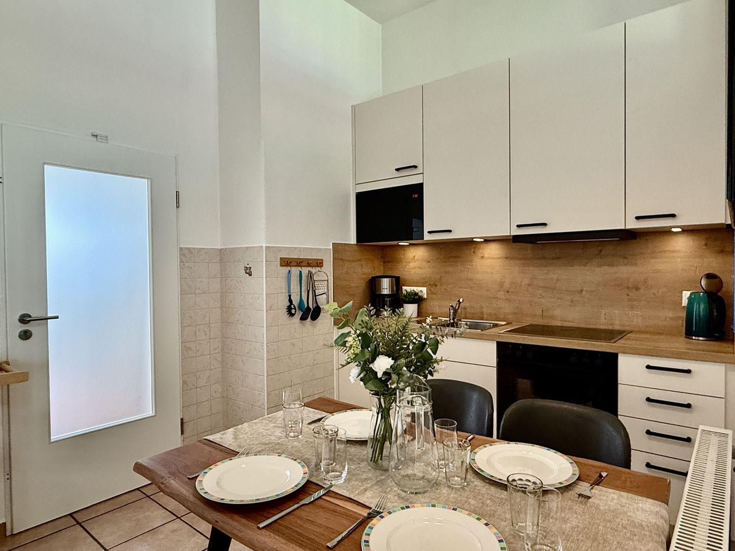 Helle, liebevoll eingerichtete Räume laden zum Entspannen ein: modernes Wohnzimmer mit offener Küche, zwei Schlafzimmer, modernes Bad.