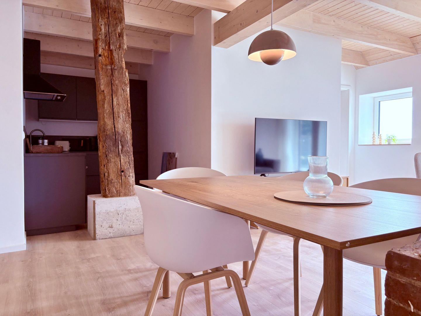 Kommen sie rein und fühlen sie sich sofort wohl in der 85 m2 großzügigen Wohnung. Sie wurde mit Liebe zum Detail eingerichtet und das sichtbare historische Ständerwerk in den Räumen geben Ihr einen unverwechselbaren Charakter.