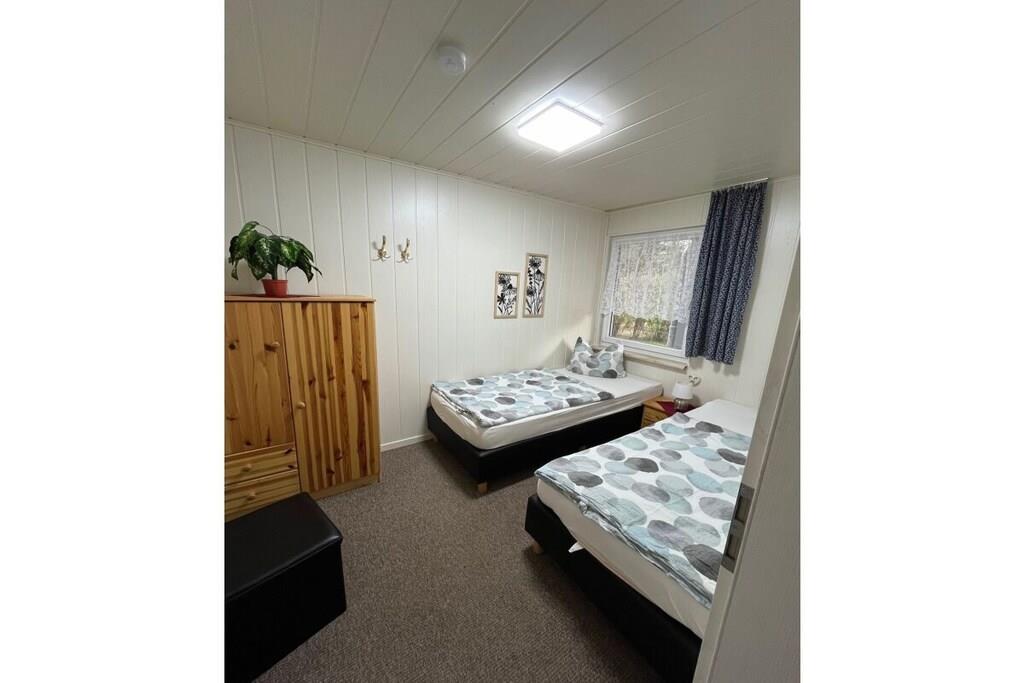 Das Ferienhaus befindet sich in unserer großzügig gestalteten Ferienhaussiedlung und verfügt über ein Wohnzimmer, zwei Schlafzimmer, Bad mit Dusche und Küche. Damit Sie sich wie zu Hause fühlen, wurden die Räume mit modernen Komfort eingerichtet. Einbauküche mit Herd und Mikrowelle, Kaffeemaschine, Wasserkocher, Toaster, TV, Telefon, kostenlose Nutzung Internet (WLAN) (Glasfaseranschluss in der Ferienanlage mit Lan-Anschluss in jeden Ferienhaus) Dusche, Grill auf Terrasse, Gartenmöbel gehören zur Ausstattung. Der Grundlossee, der förmlich zum Angeln einlädt (Angelkarten in unserer Anlage erhältlich), befindet sich unmittelbar vor der Feriensiedlung. Angelbote bieten wir zur kostenlosen Nutzung unserer Urlaubsgäste an.