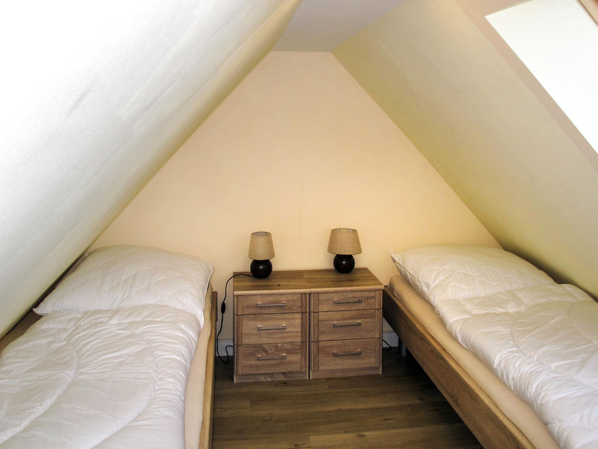 3-room apartment 60 m2 on 2 levels, on the upper floor. Object suitable for 2 adults + 2 children. Cosy furnishings: upper floor: living/dining room with sloping ceilings with Scandinavian wood stove, dining table, satellite TV and hi-fi system. 1 room with sloping ceilings with 2 beds and satellite TV (flat screen). Kitchenette (oven, dishwasher, 4 ceramic glass hob hotplates, toaster, kettle, microwave, electric coffee machine). Shower/WC. 2nd upper floor: open gallery with sloping ceilings with 2 beds. Oil heating, underfloor heating. Terrace 20 m2. Terrace furniture, barbecue. Facilities: baby cot. Please note: non-smokers only. Smoke alarm. On the ground floor, lounge with satellite TV and shower/WC for rent (arrangement on site). Instead of an enclosed bedroom, some sleeping areas are located in an open-plan area (gallery, alcove, etc.).