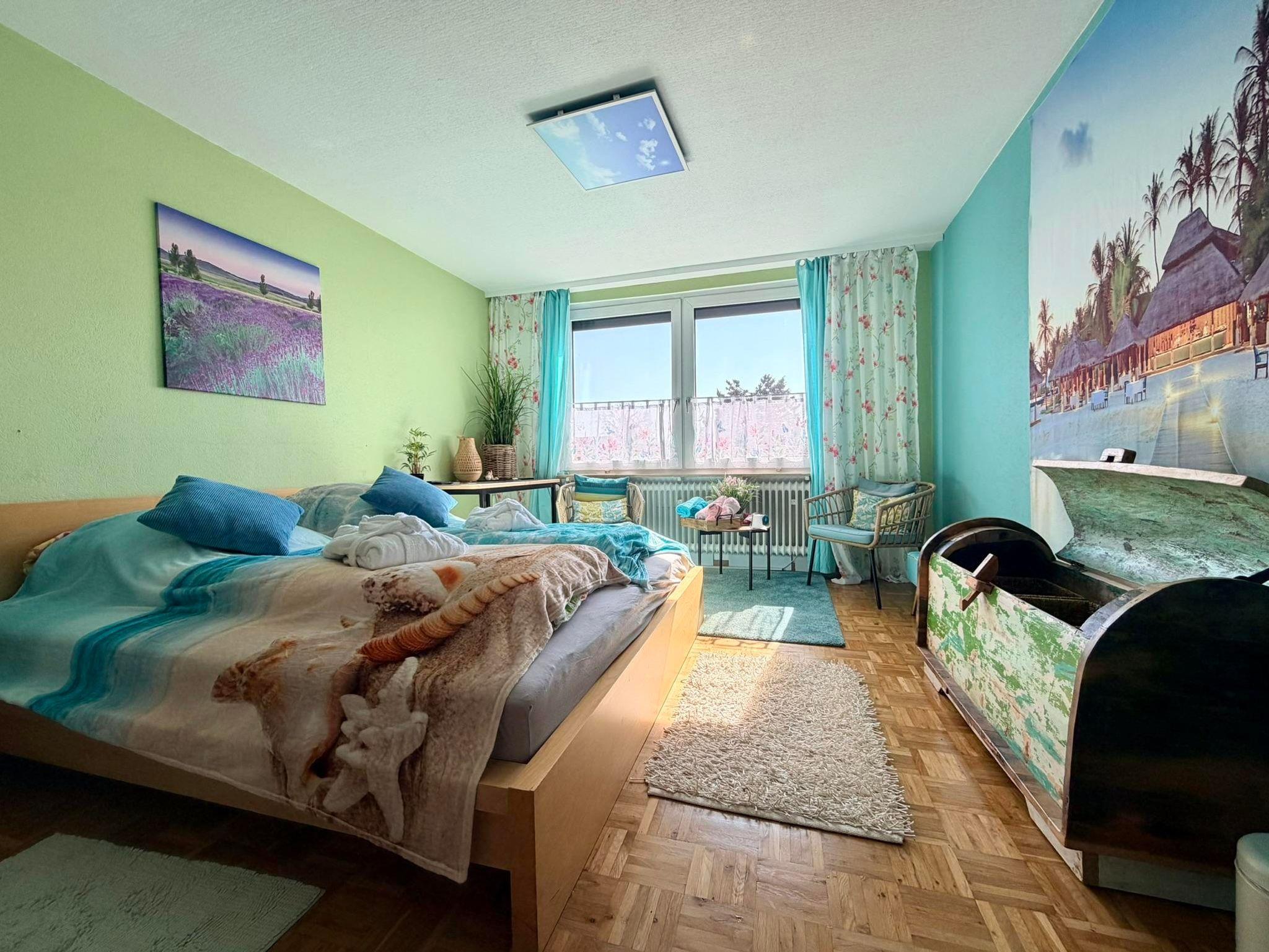 Willkommen in einem lichtdurchfluteten, liebevoll gestalteten Doppelzimmer (16?m²) im Boho-Style im ersten Obergeschoss – perfekt zum Entspannen und Auftanken.